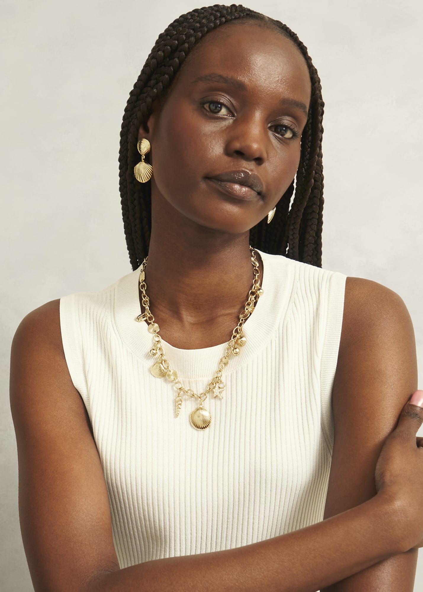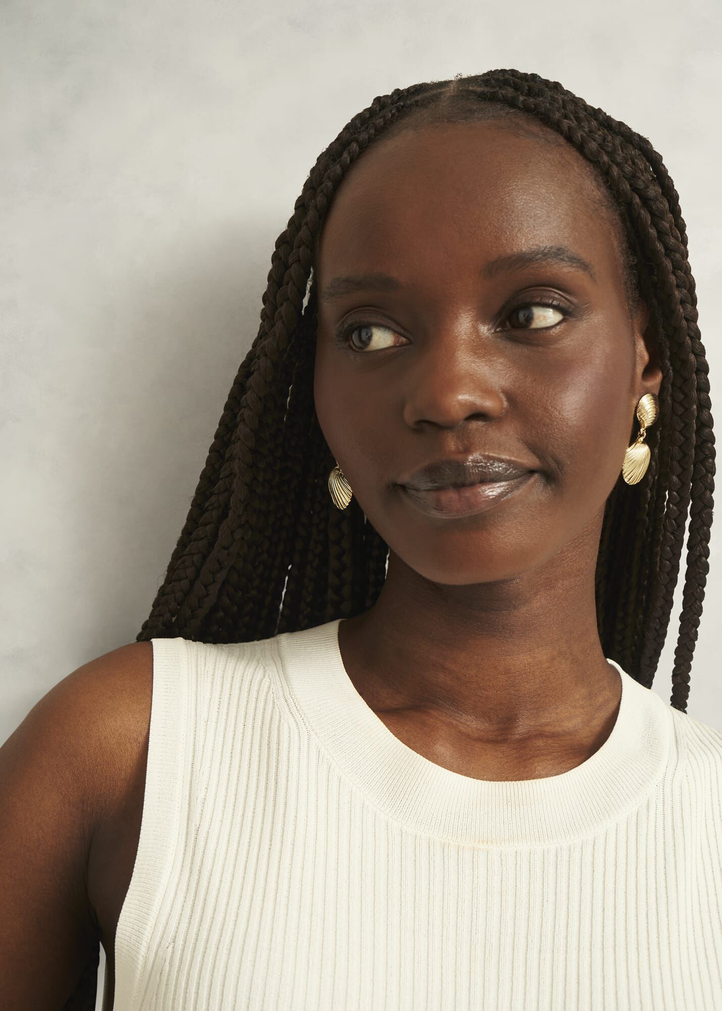 When the ocean calls, lean on the Amaya shell earrings for effortless holiday aesthetic.