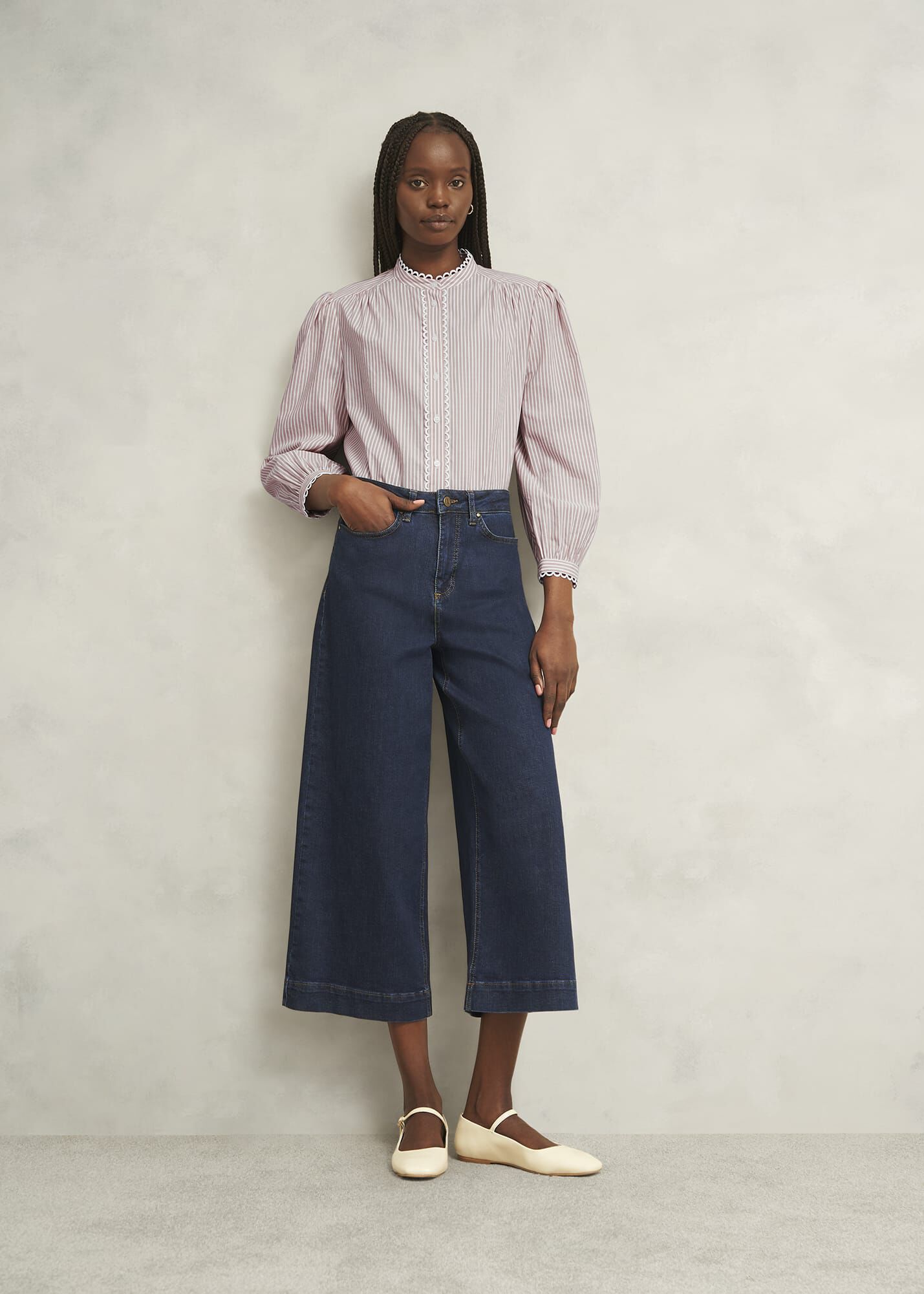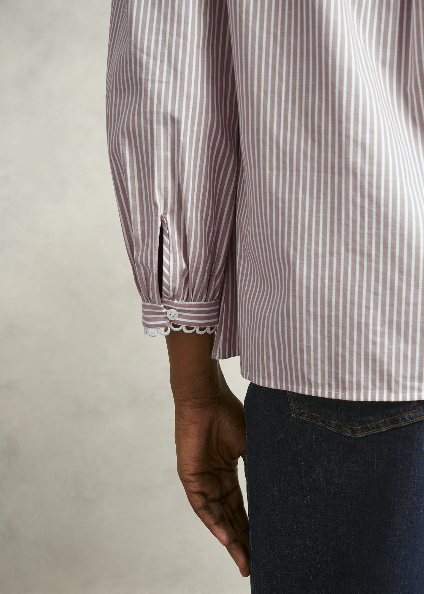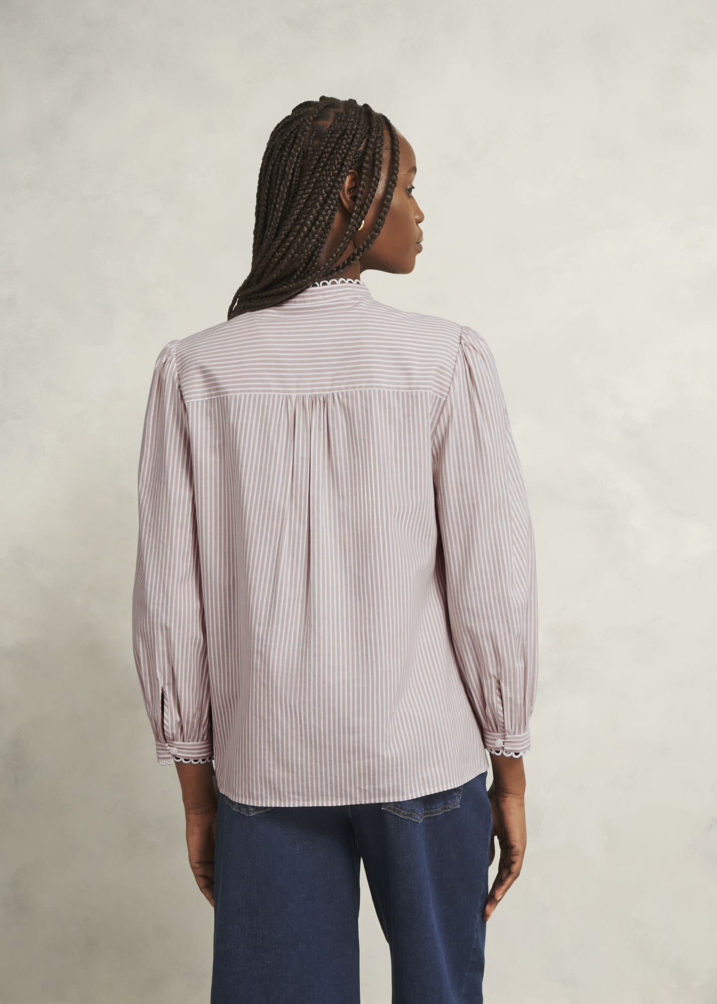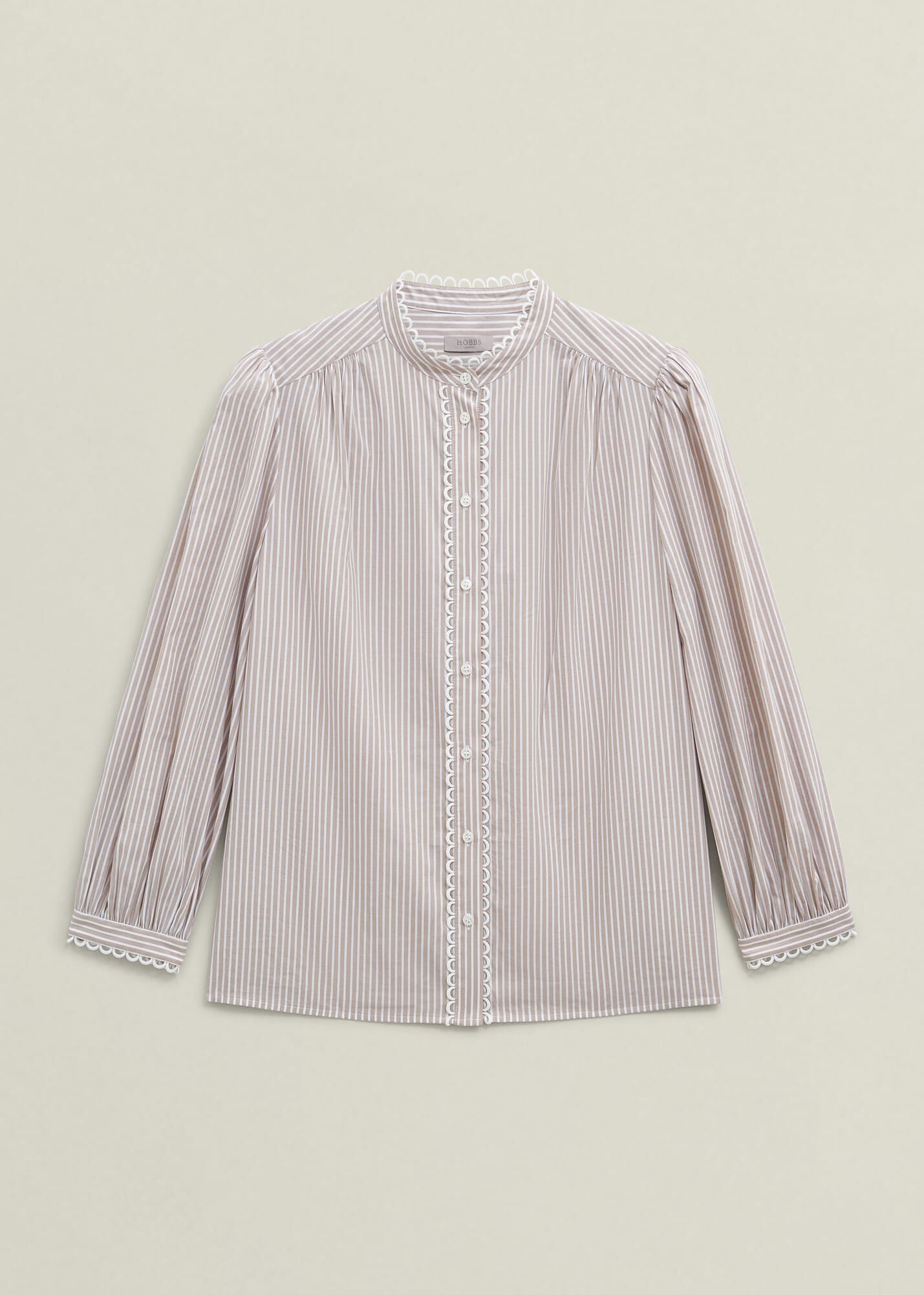 Easy, breezy. Designed with a neutral stripe and intricate scallop trims, the Becca blouse is a fuss-free option for everyday styling.