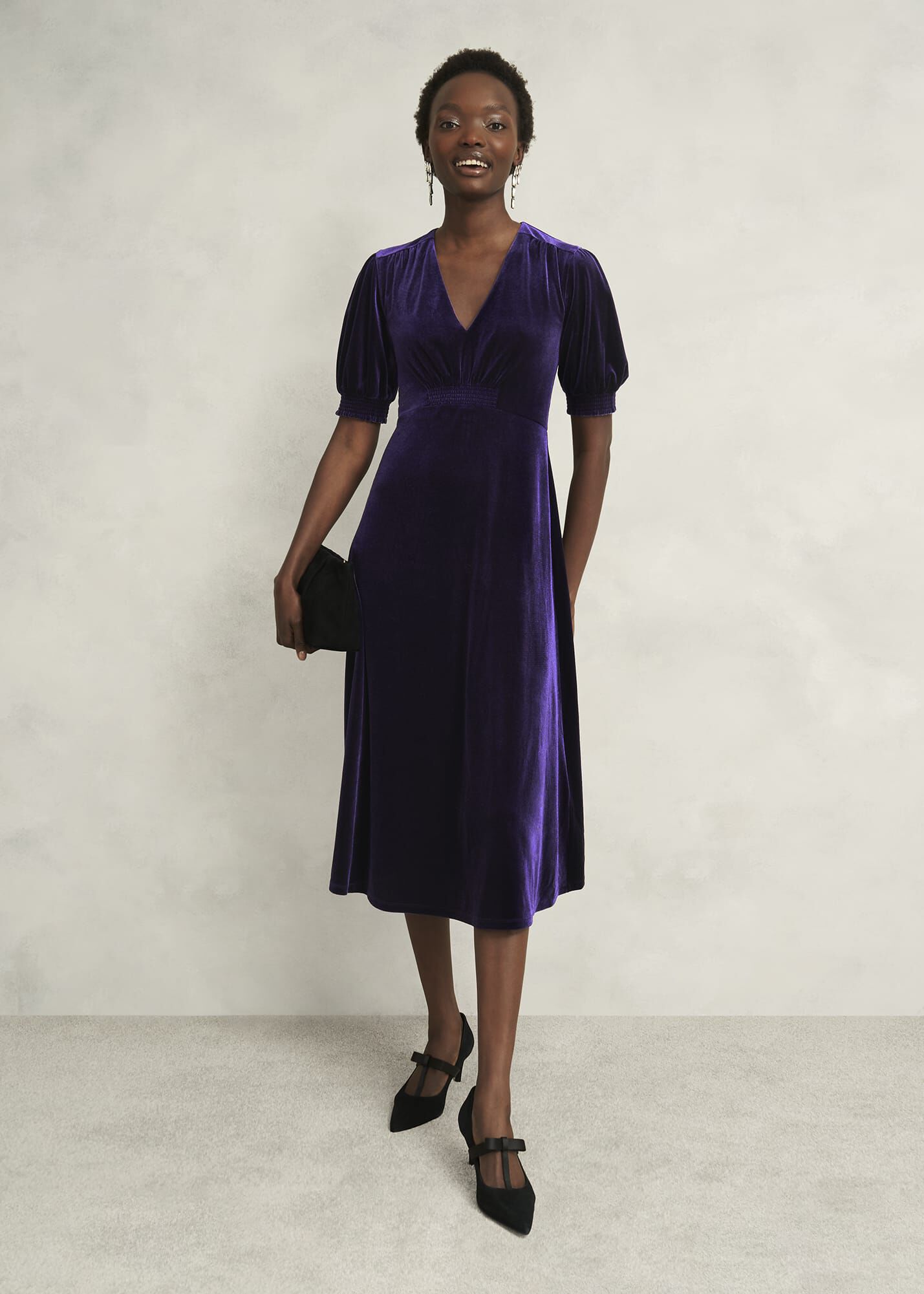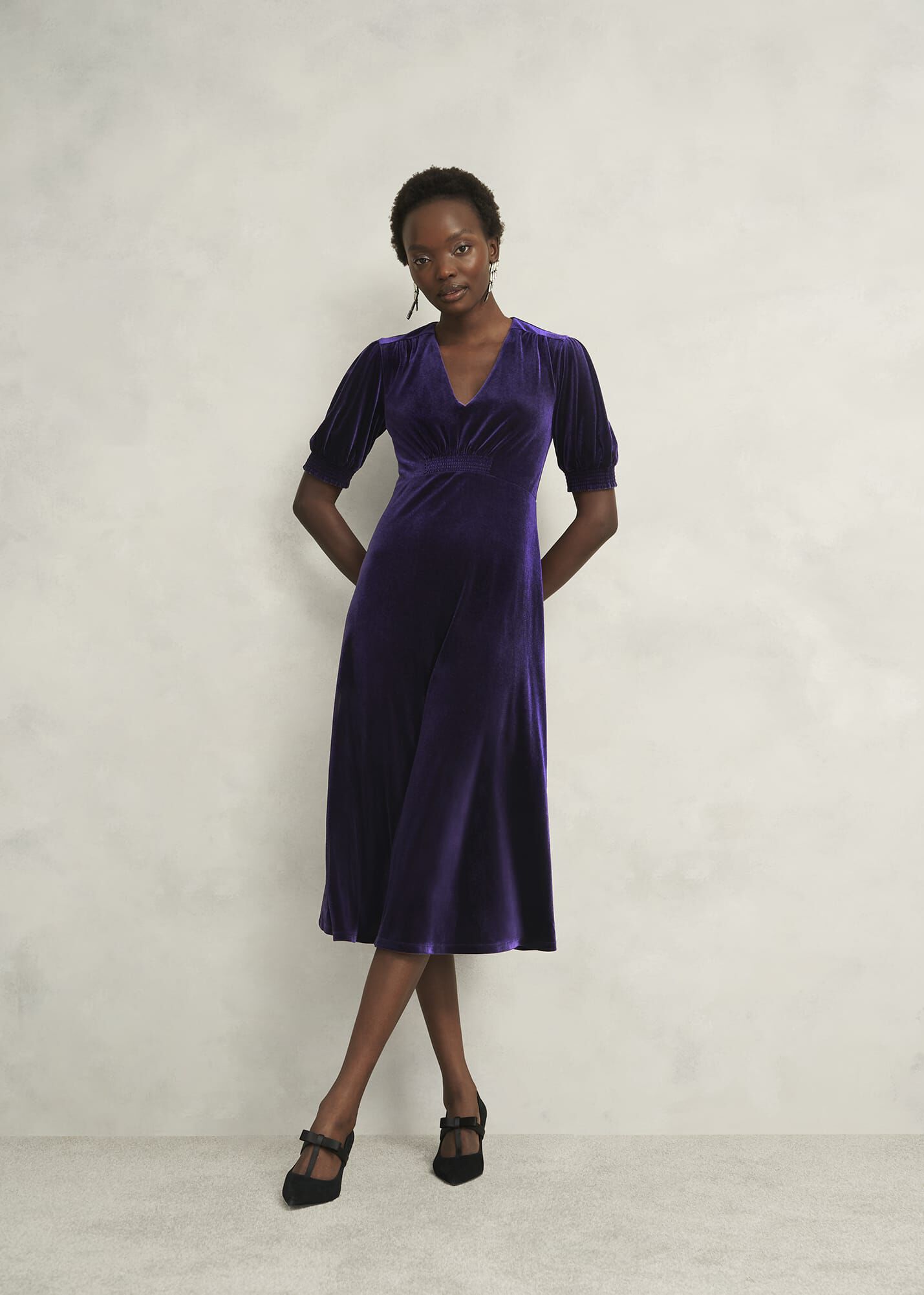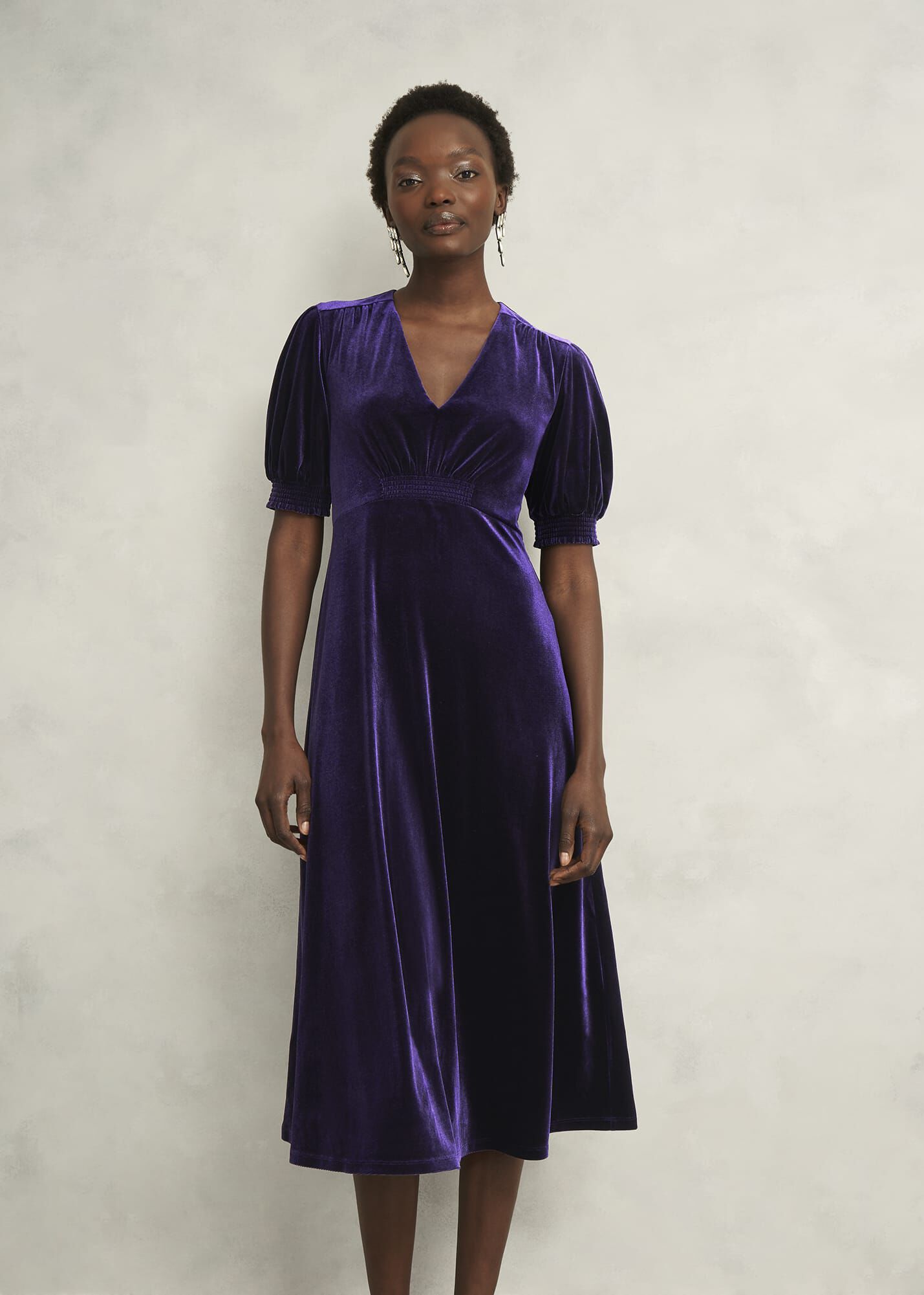 Where sumptuous velvet marries rich jewel tones, party season starts with the Dormer midi dress. Just add a sparkly heel.