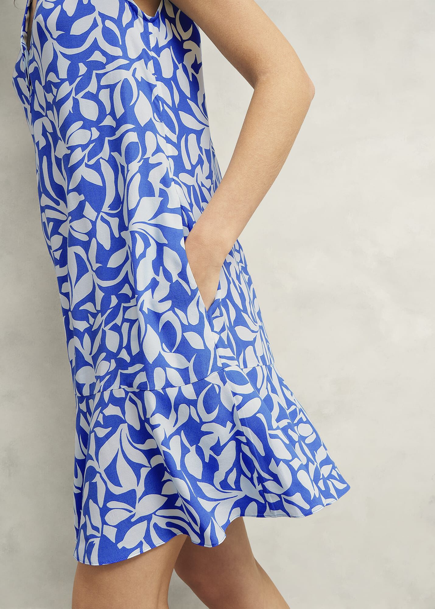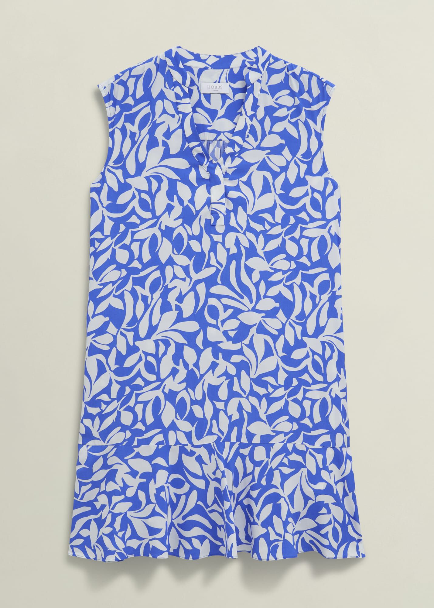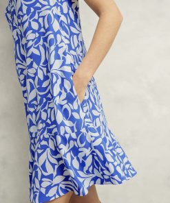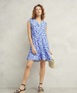 With a botanical print brought to life in an oceanic shade of blue, this summer mini dress serves myriad sundrenched solutions.
