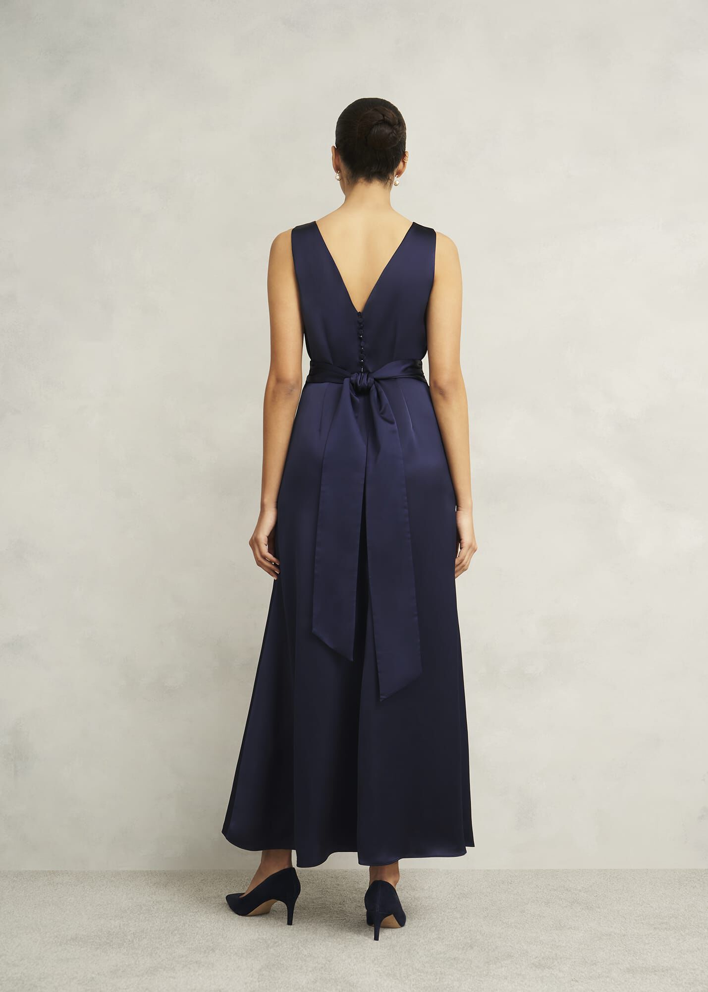 - Sleeveless maxi silhouette