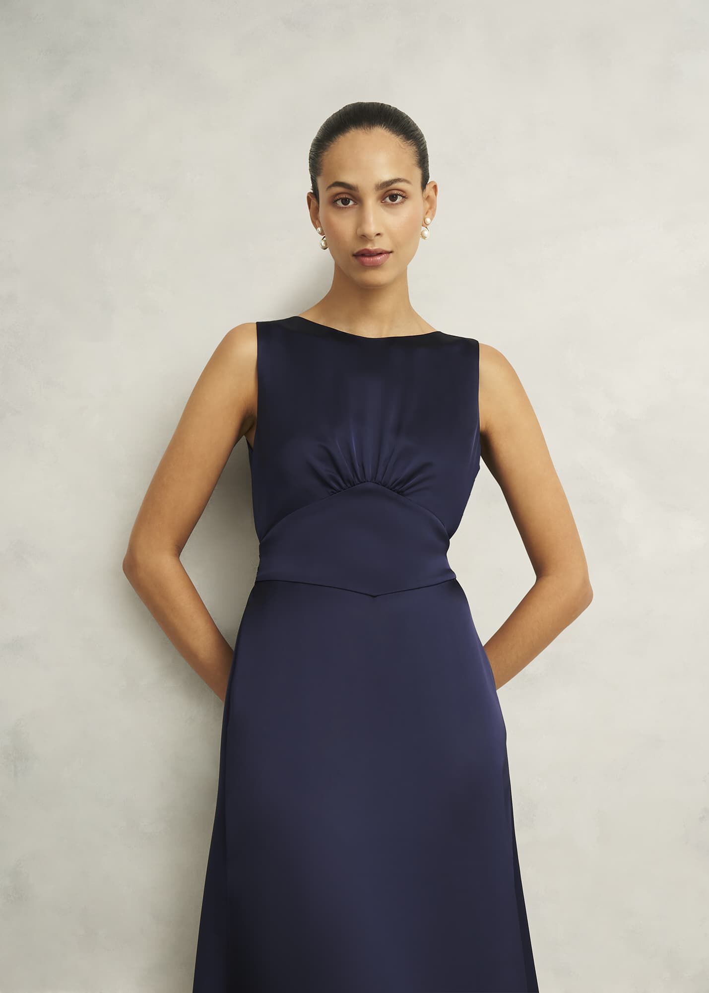 - Defined waist and flattering bust ruching