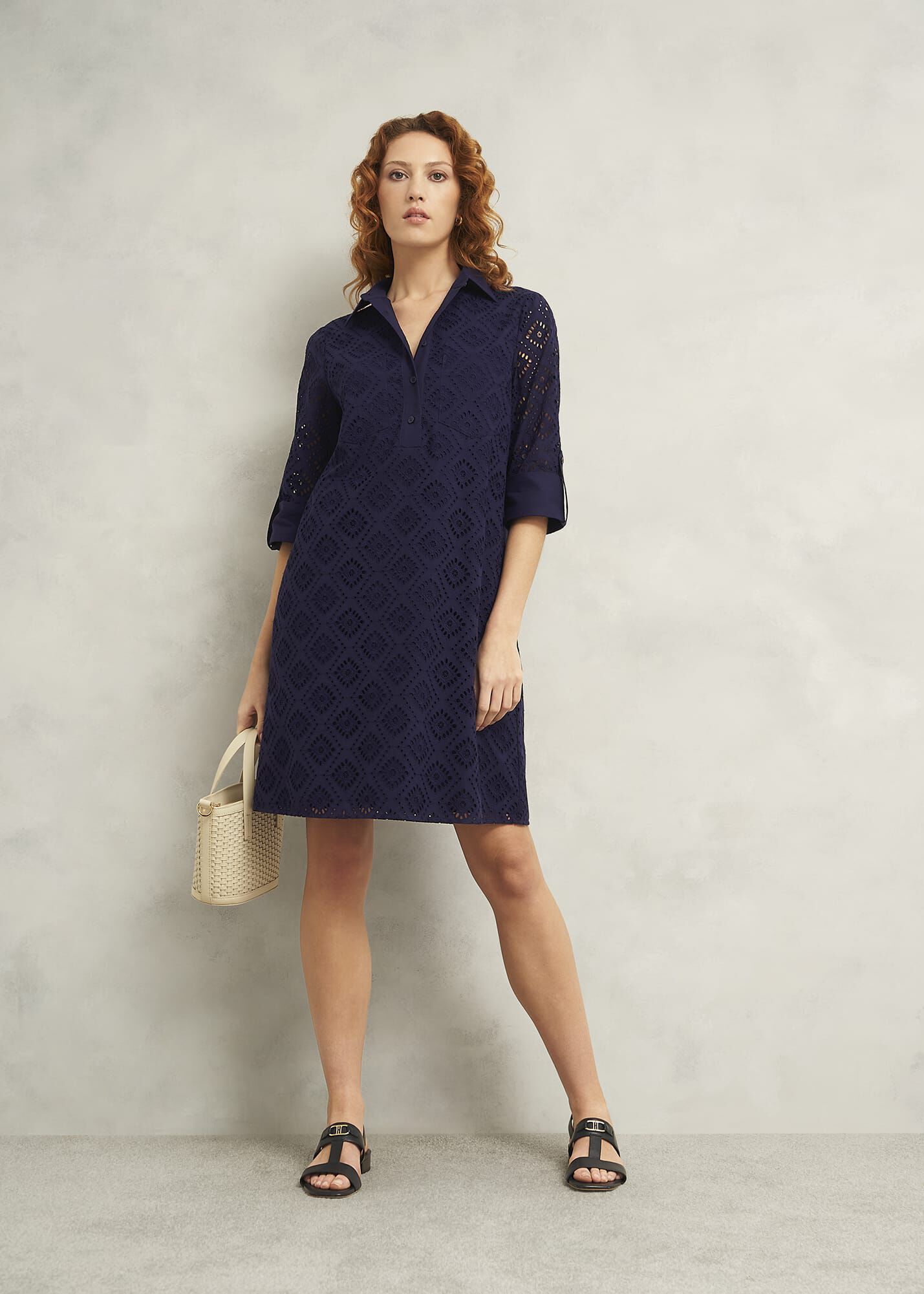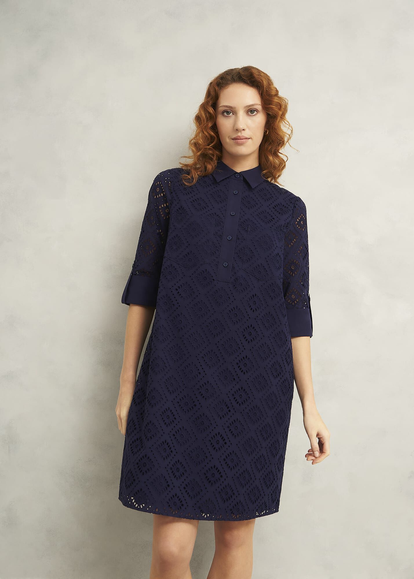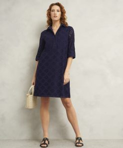 Day or night, the Marcia dress lends a versatile tunic silhouette and textural broderie to every date in the diary.