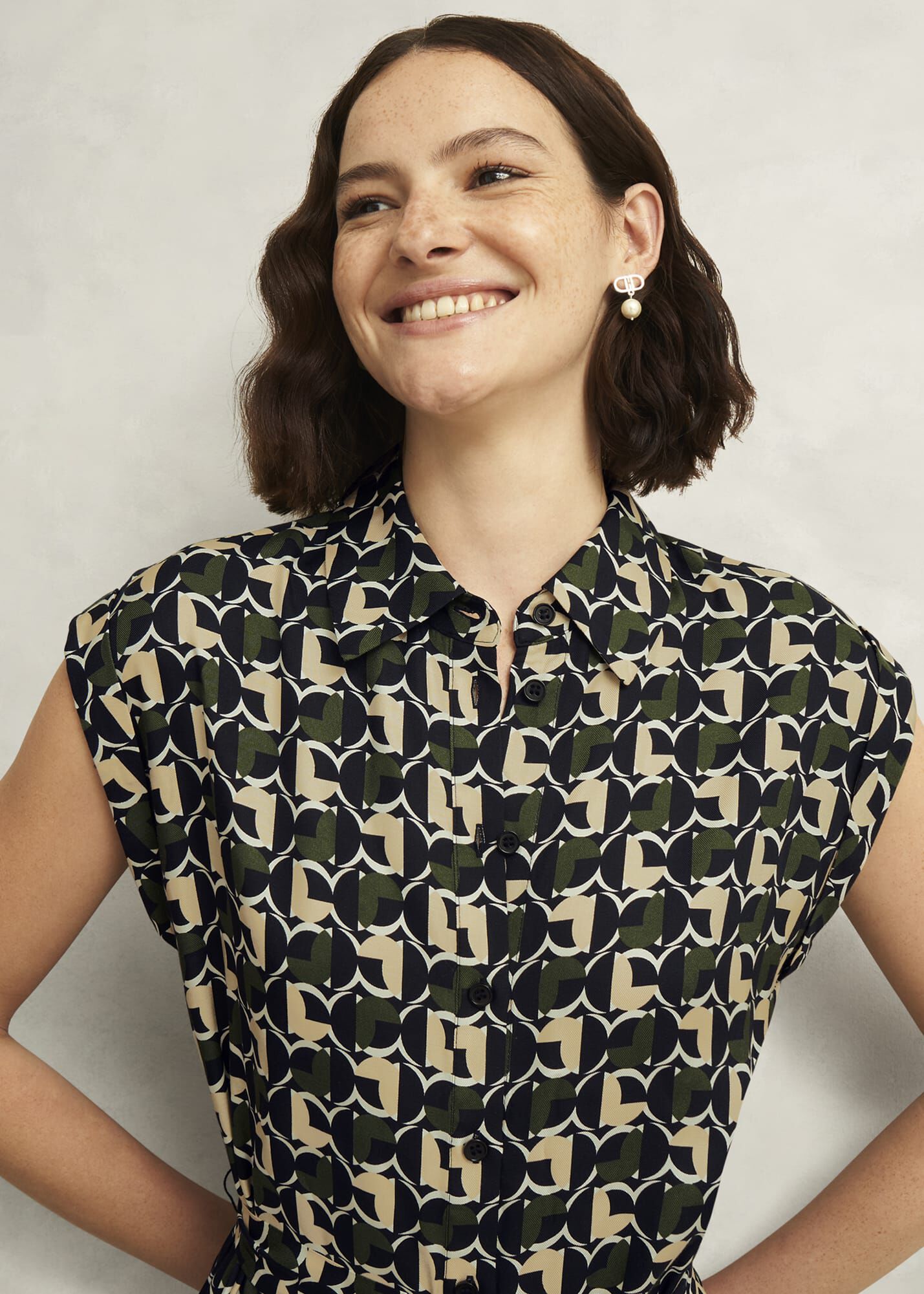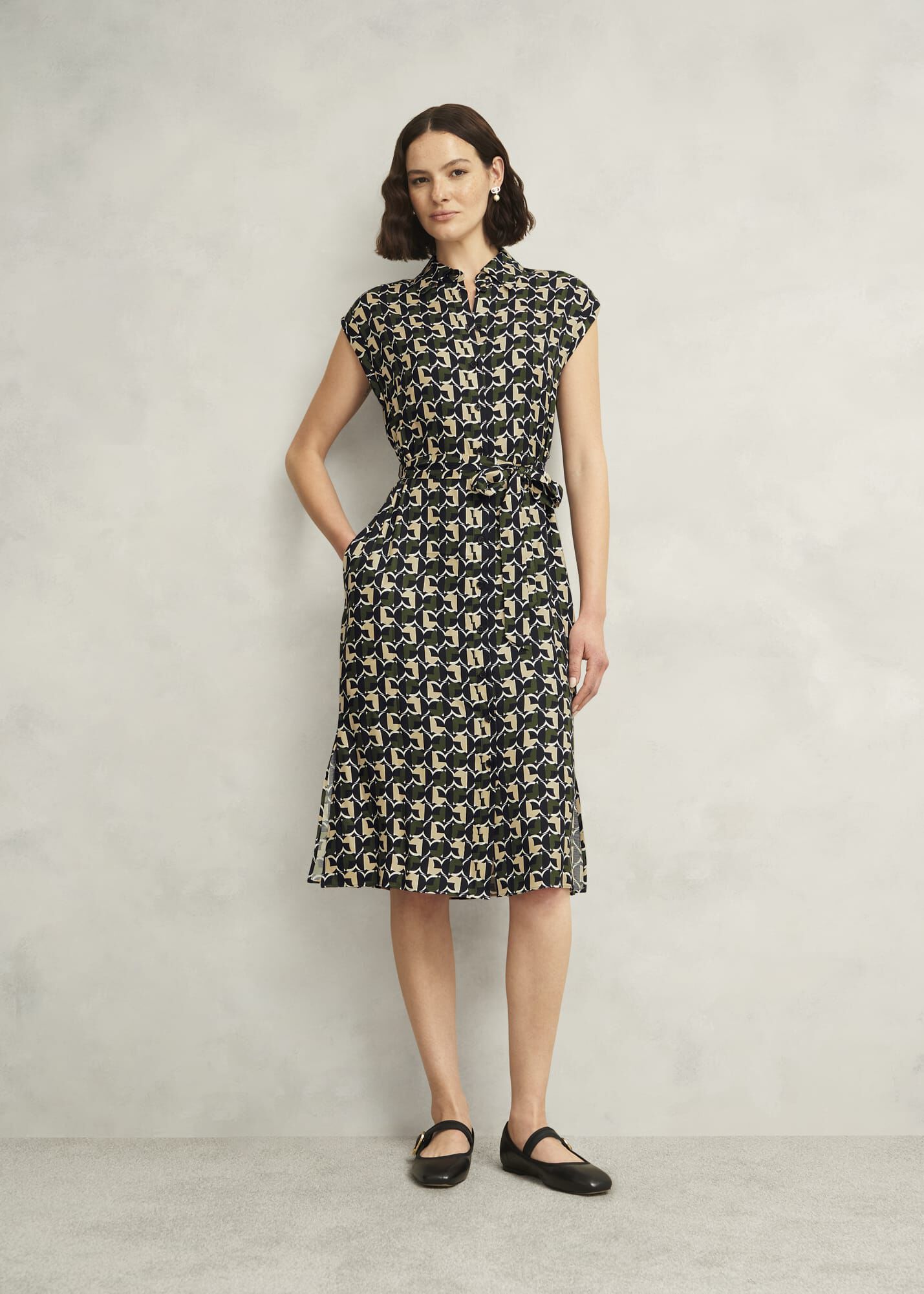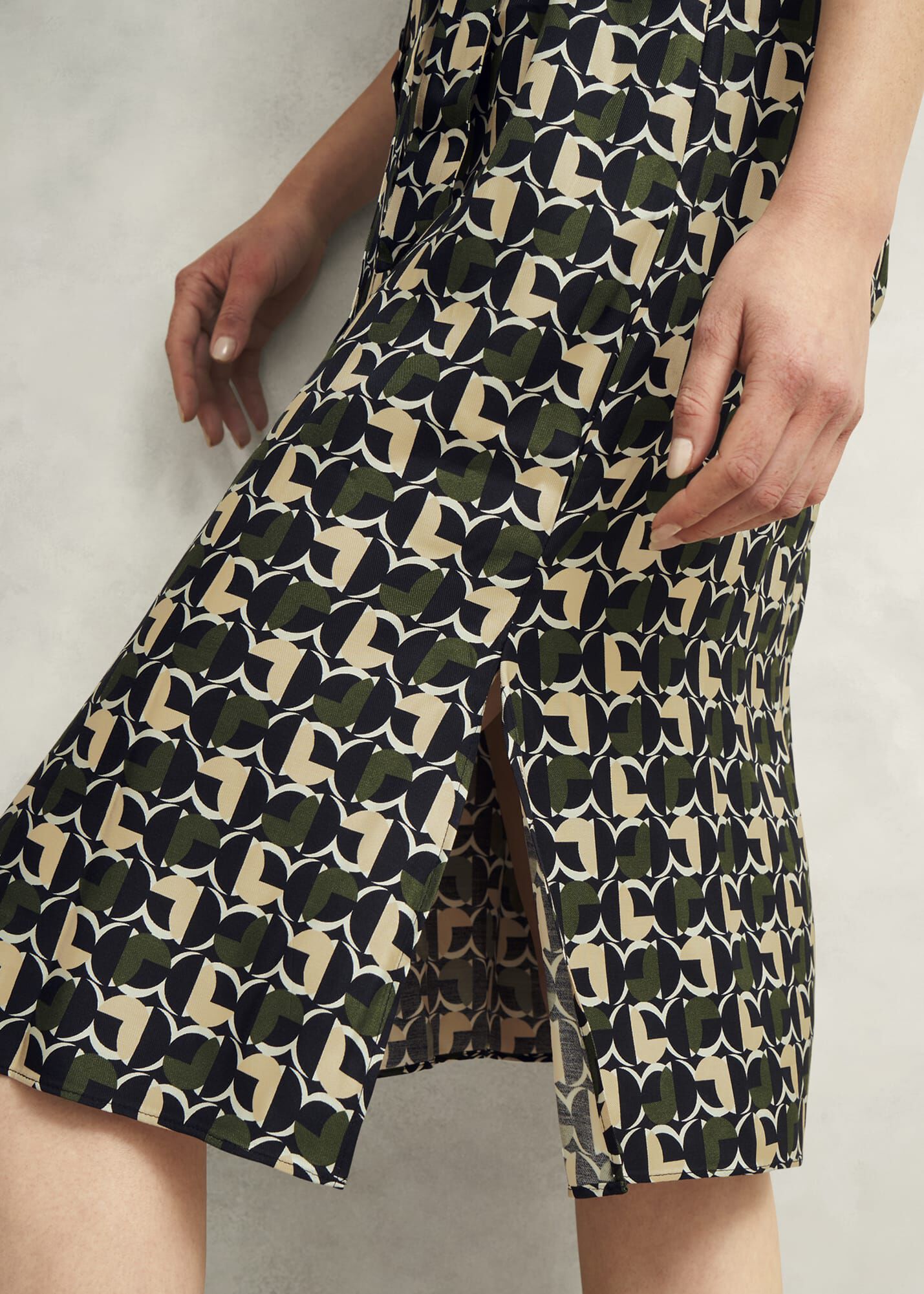 Midweek in the city or weekend brunch, the Kalinda dress serves every date in your diary with a modern geometric print.