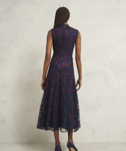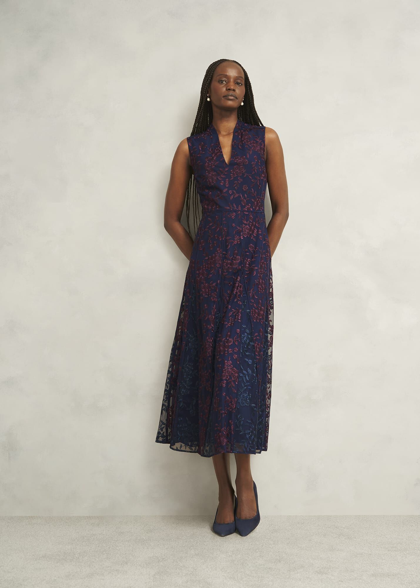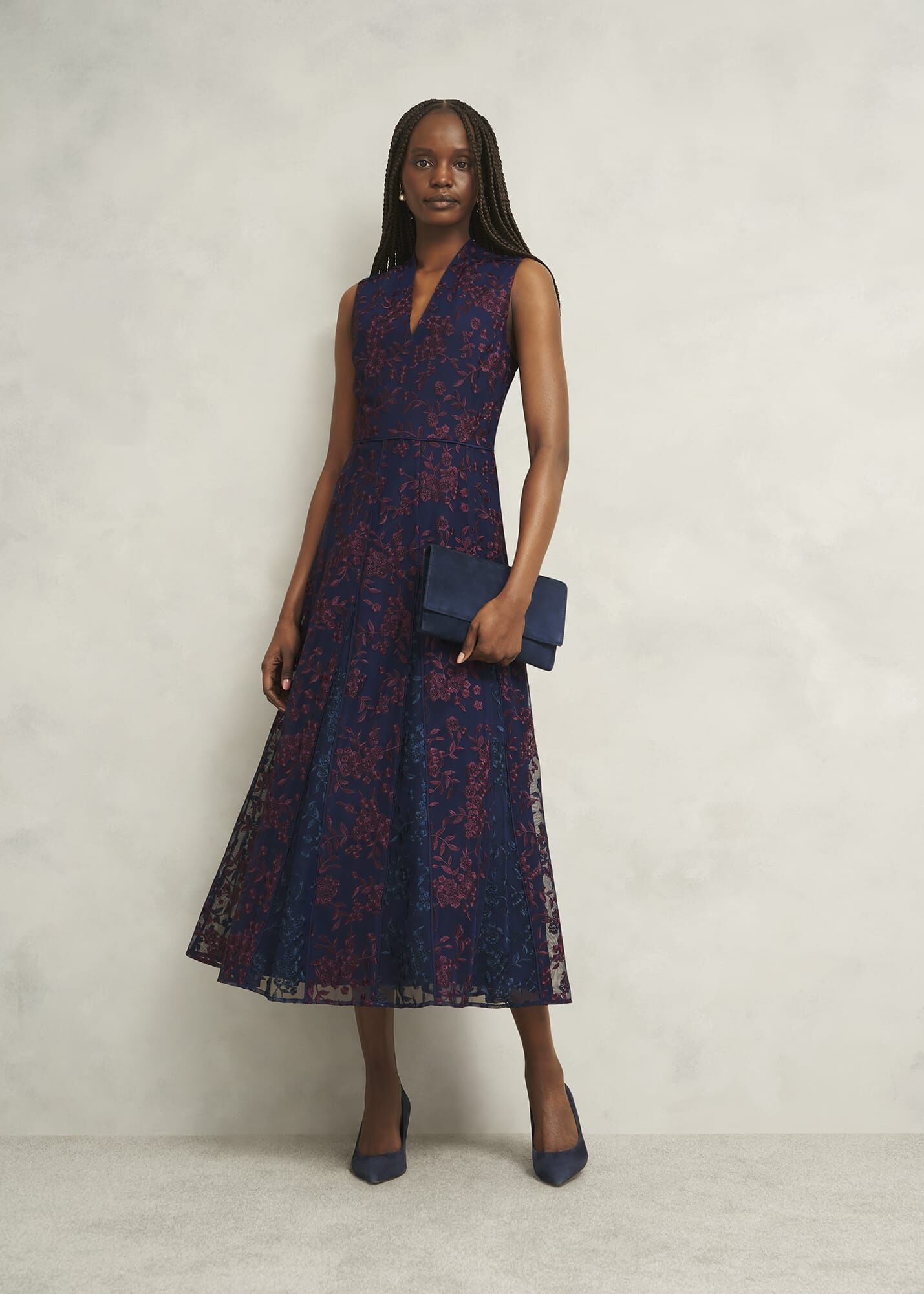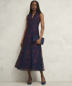 Hobbs Women’s Dresses Petite Quin Embroidered Dress | Midnight Red