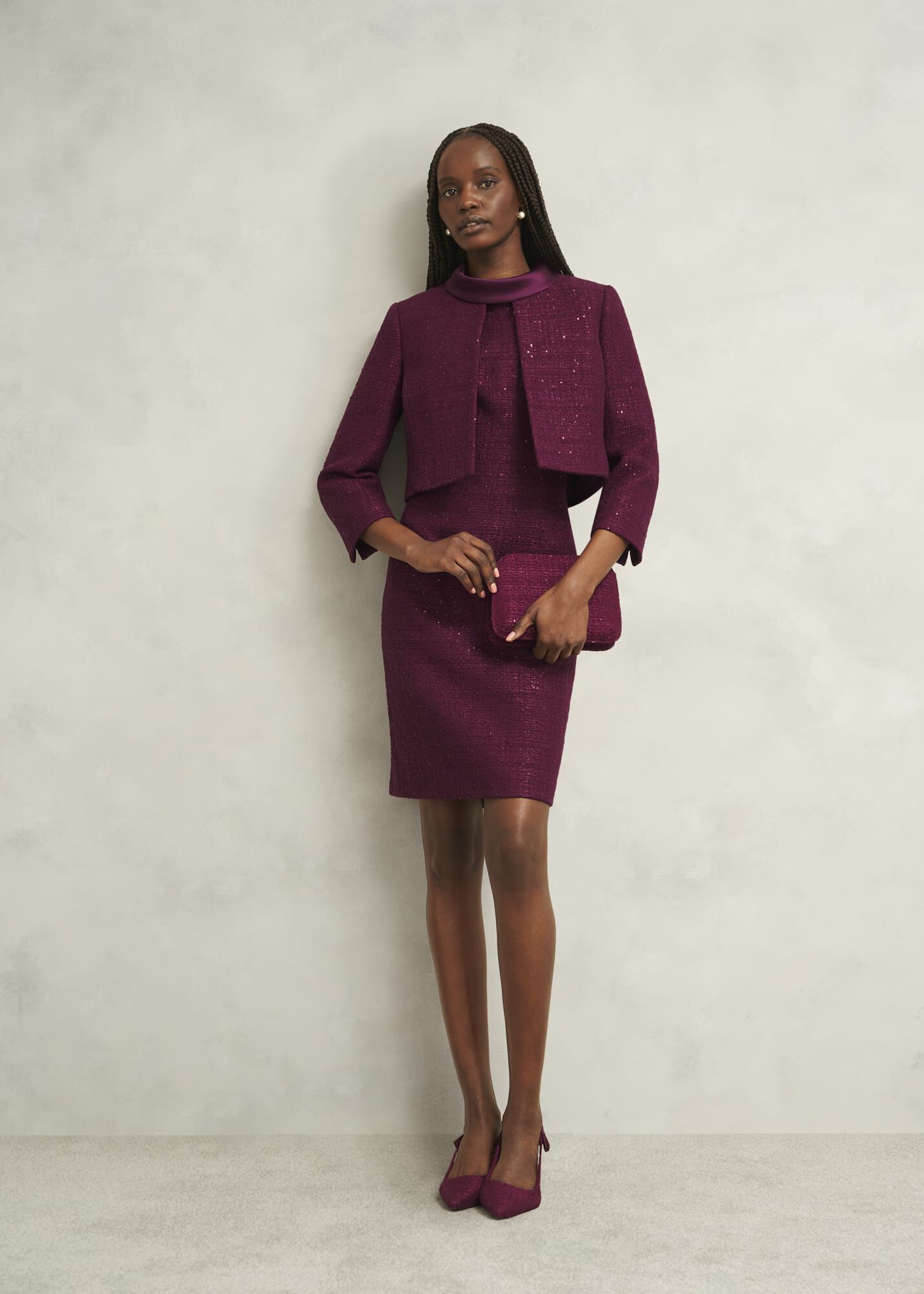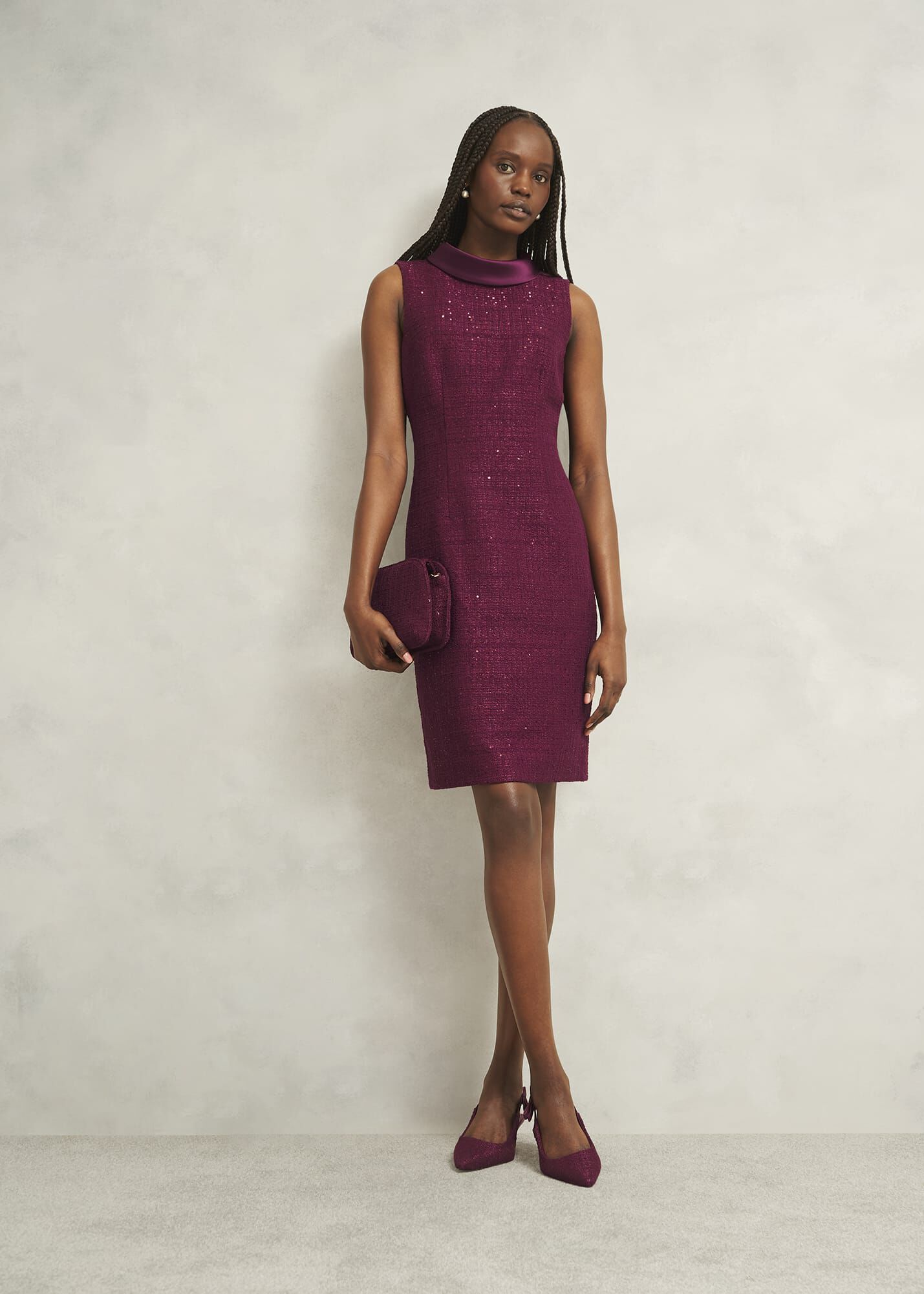 Hobbs Women’s Dresses Prisha Sequin Tweed Dress | Warm Plum