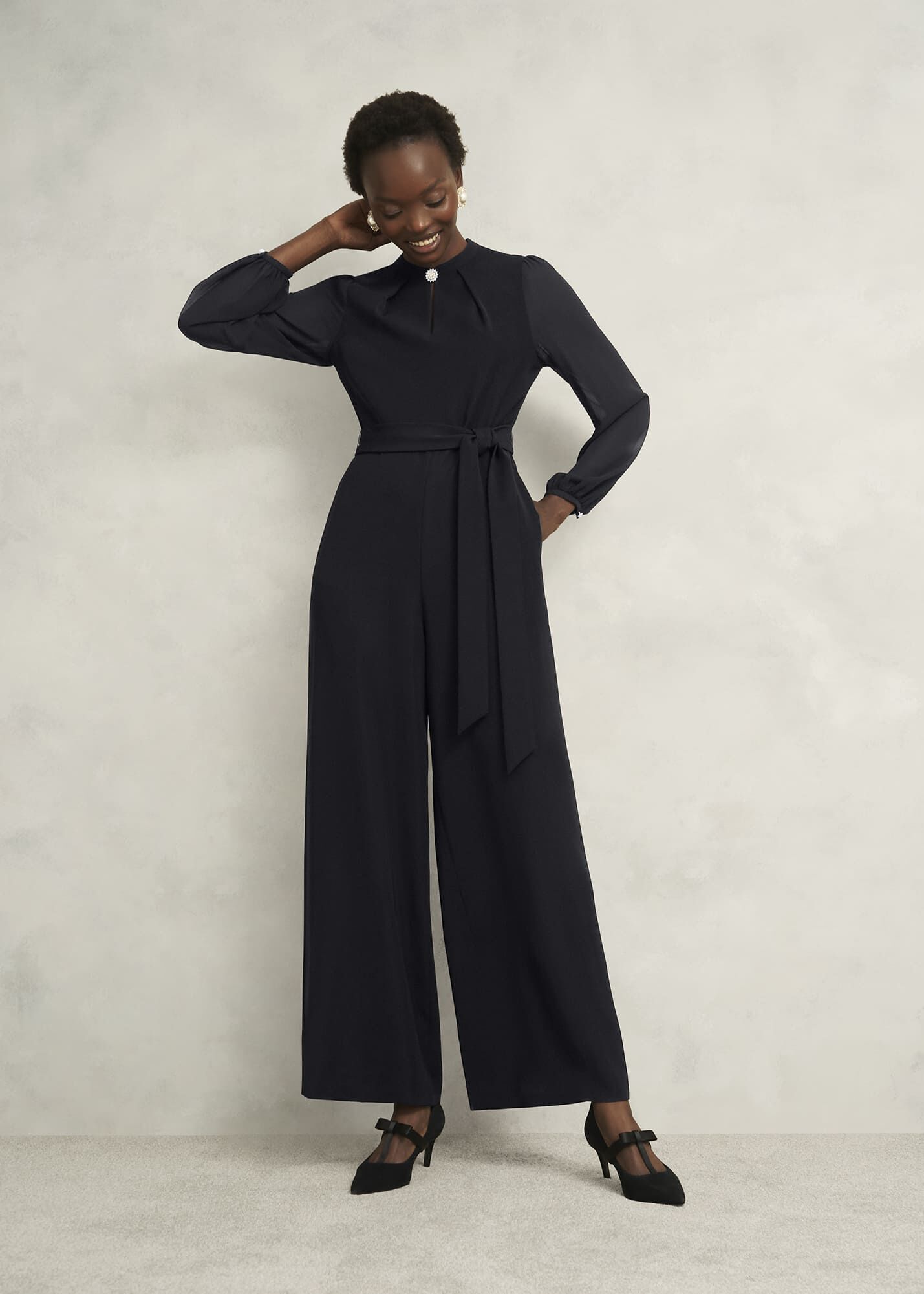 Event ready. Simple yet sophisticated, the Rosamund jumpsuit nods to elegance with a feminine shape and alluring accents.