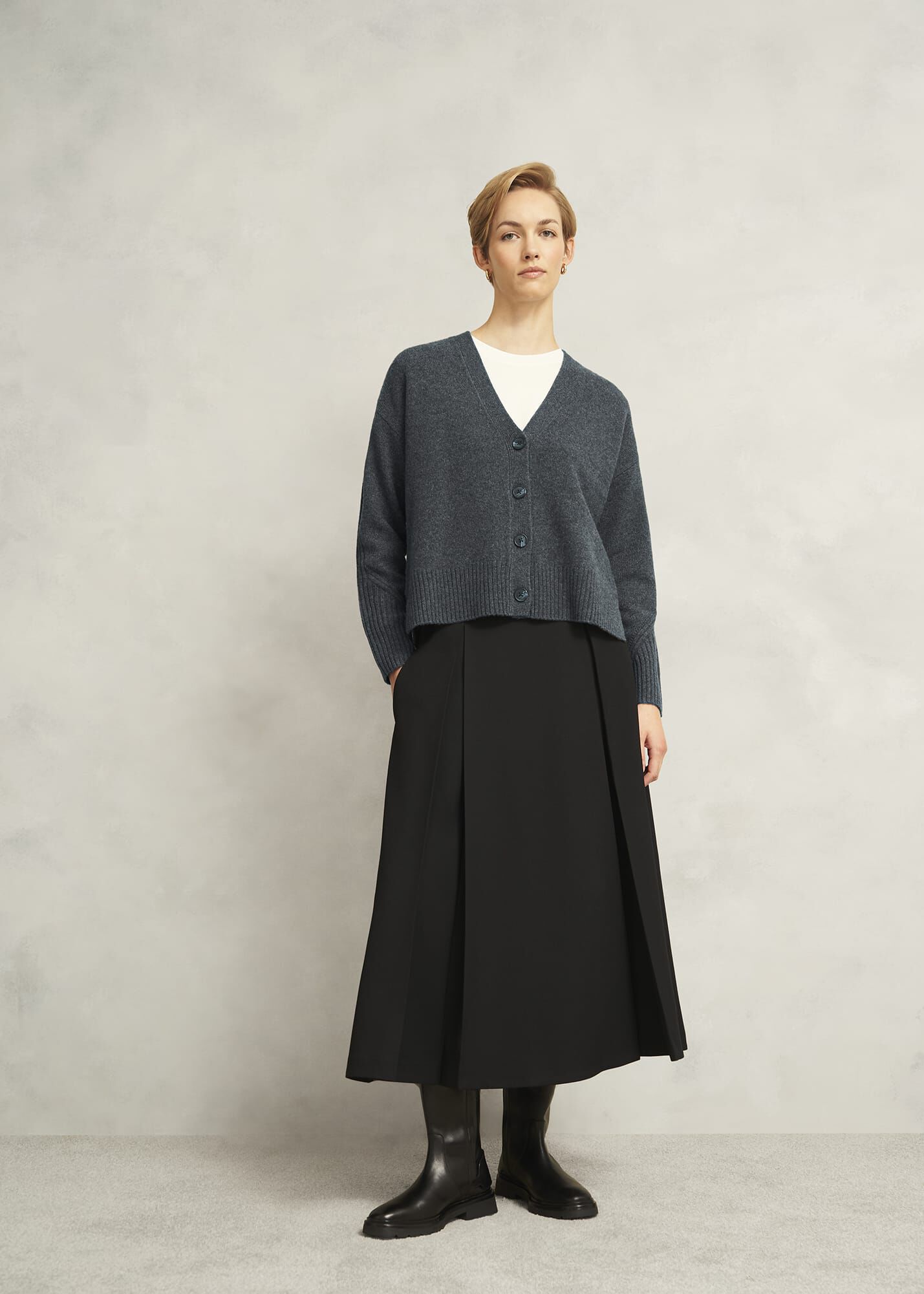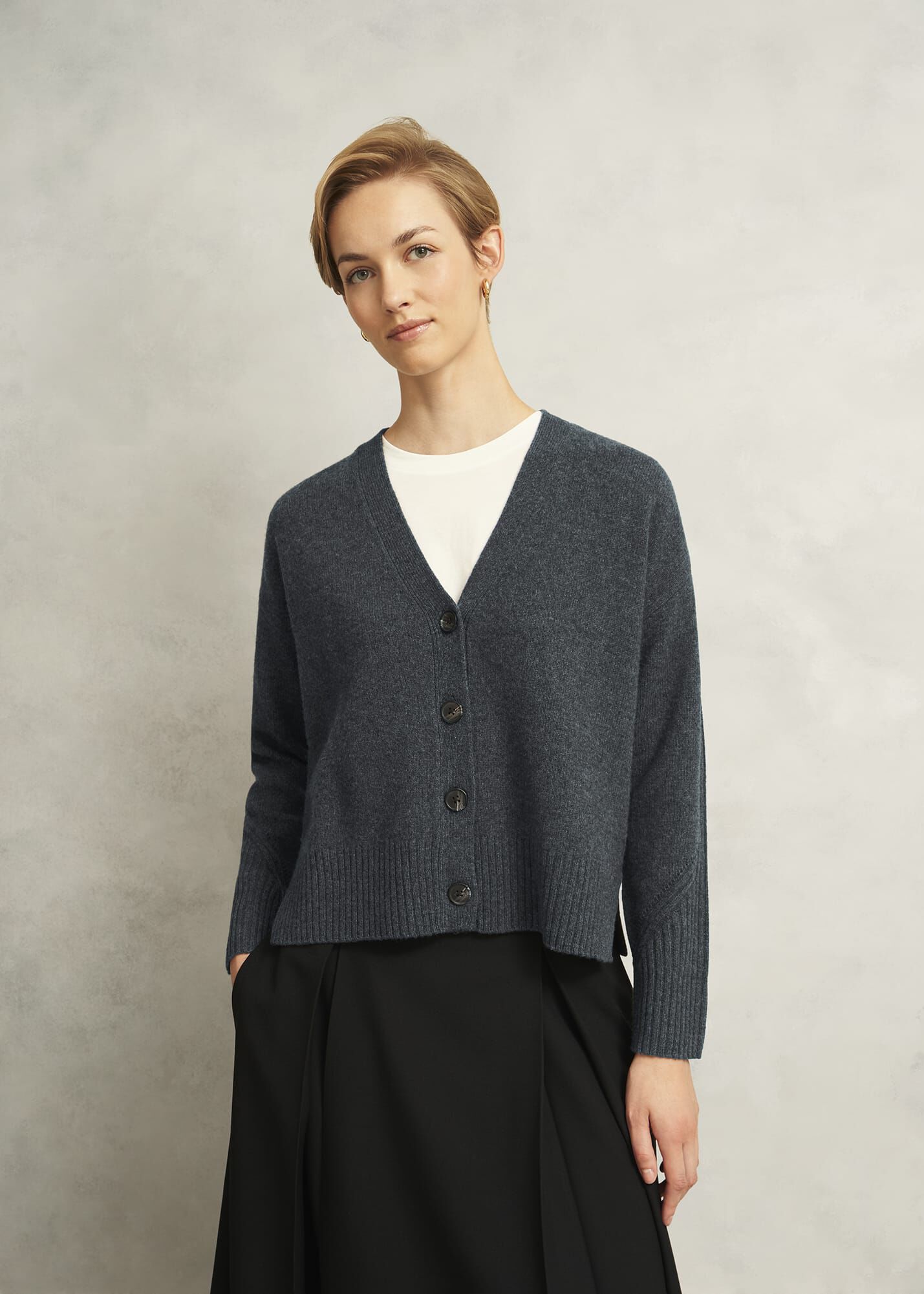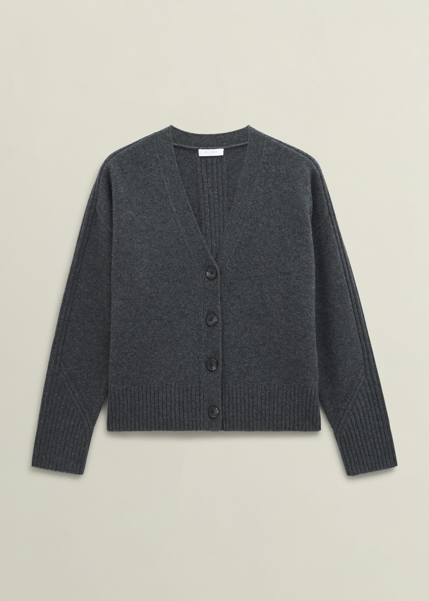 Nothing beats the ease of a grey cardigan. And cut in a relaxed fit, it can be styled with tailoring during the week or layered over a dress come the weekend.