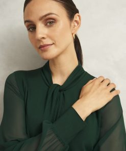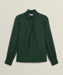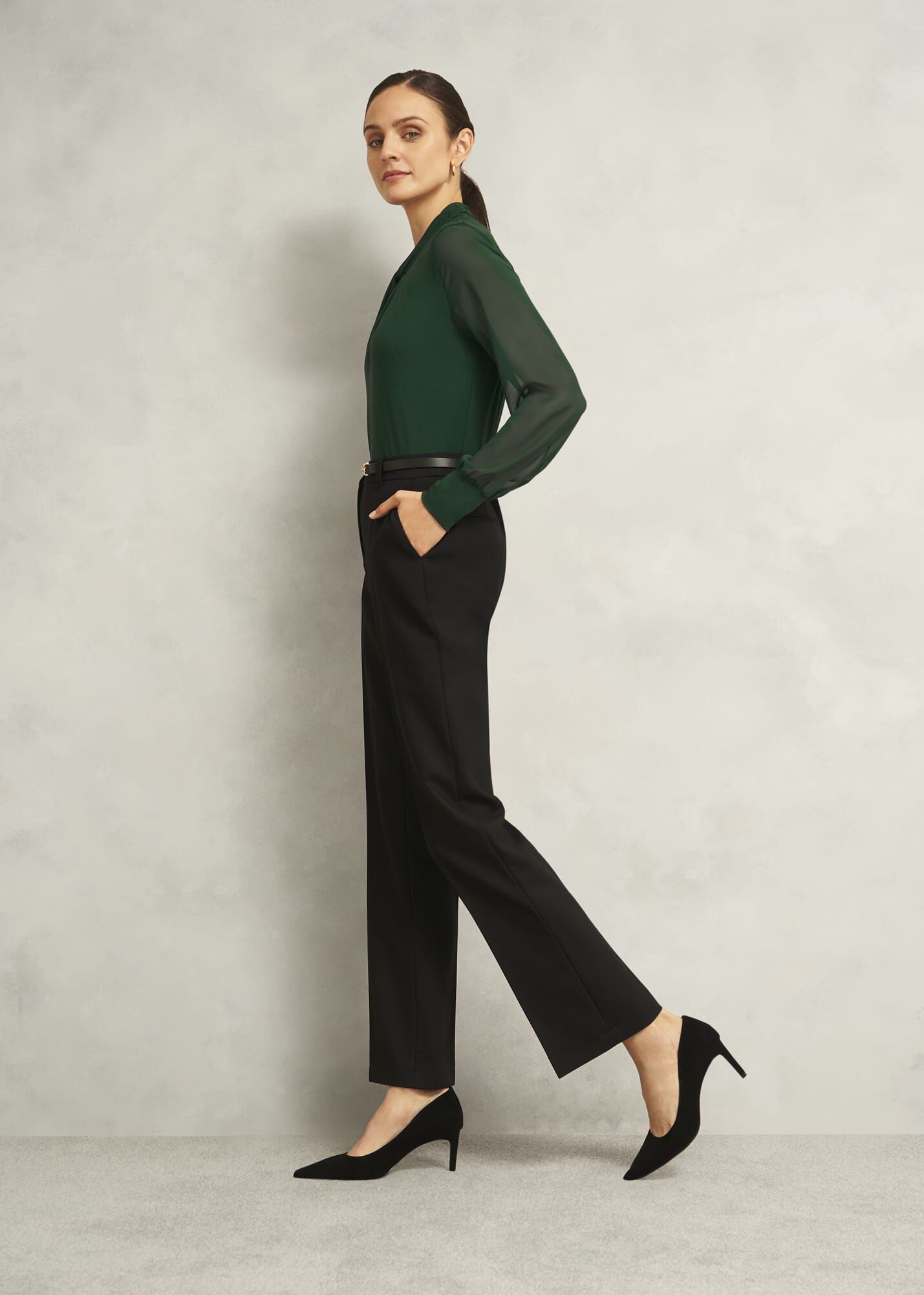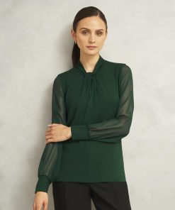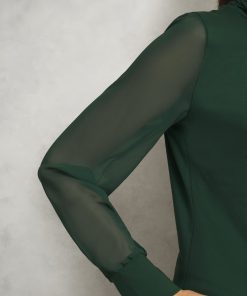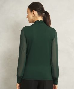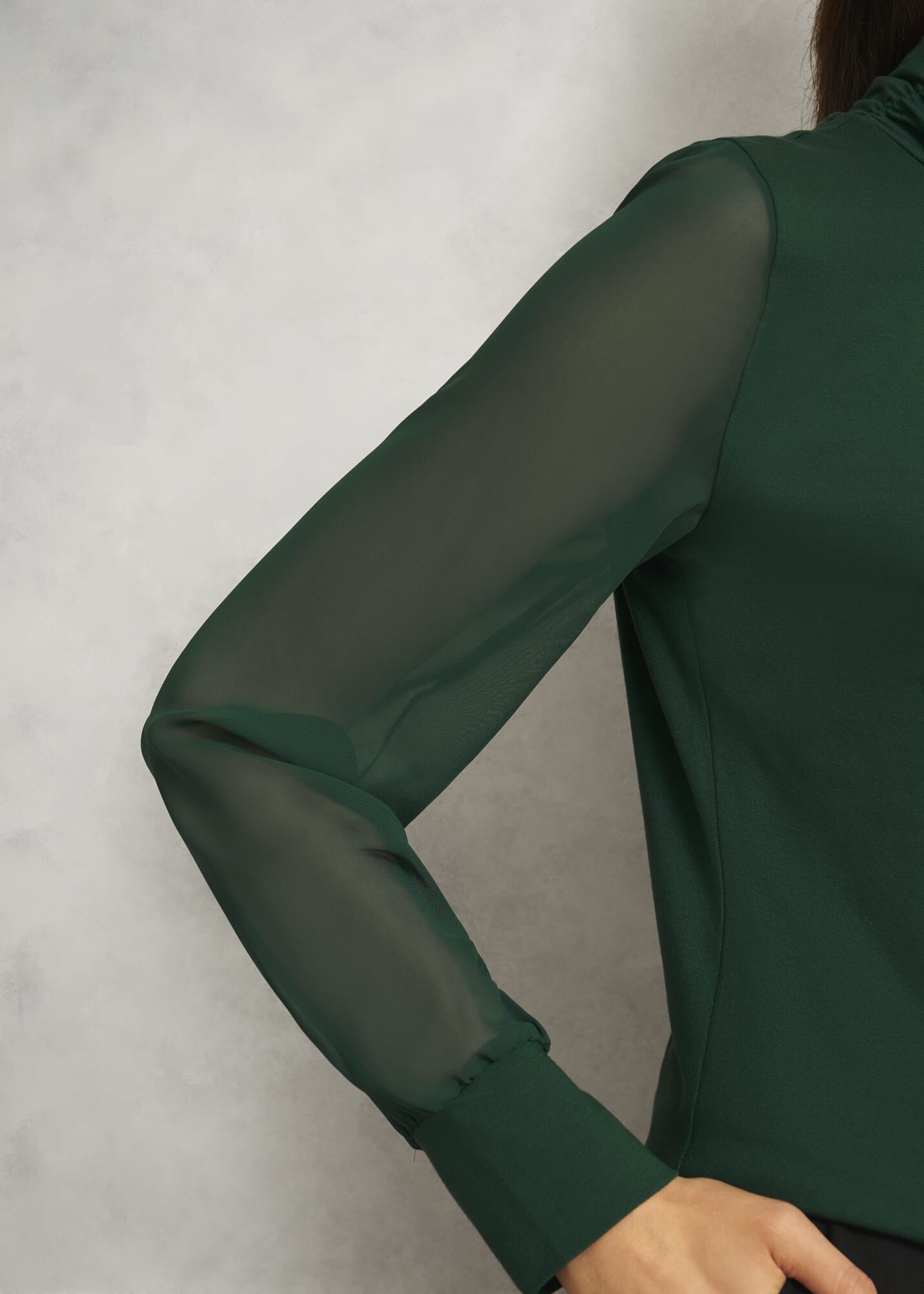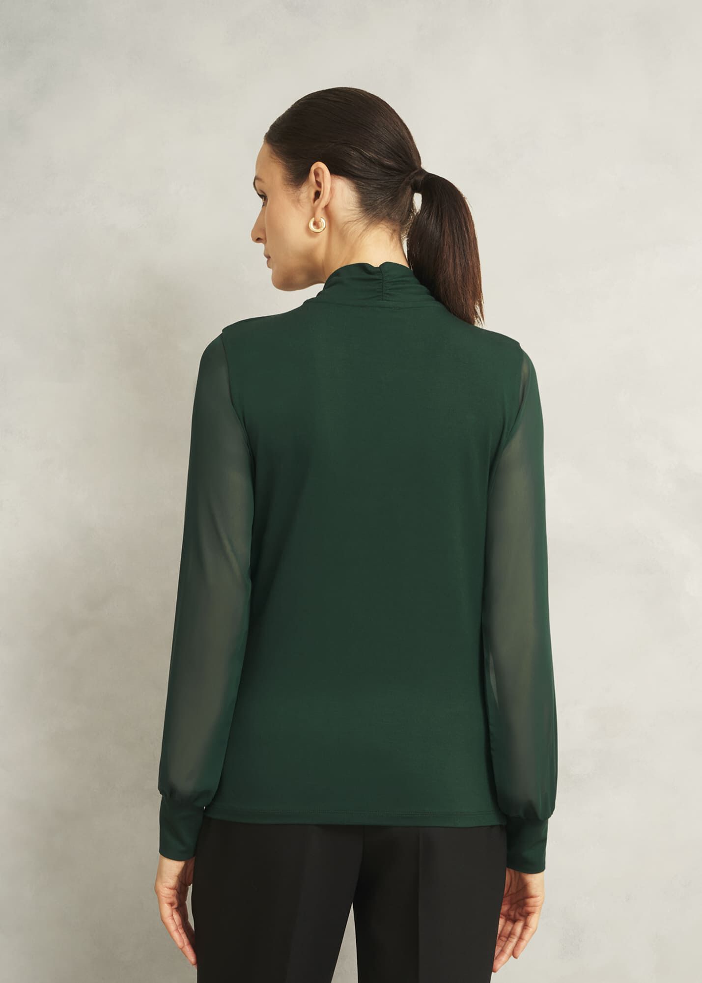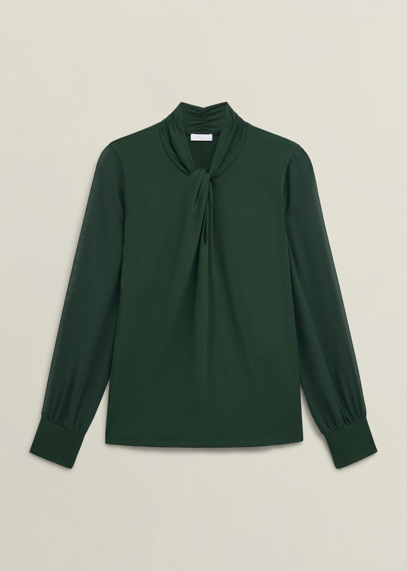 Jersey, with an elegant twist: the Ashley top serves day-to-night allure with a feminine fit and sheer sleeves.