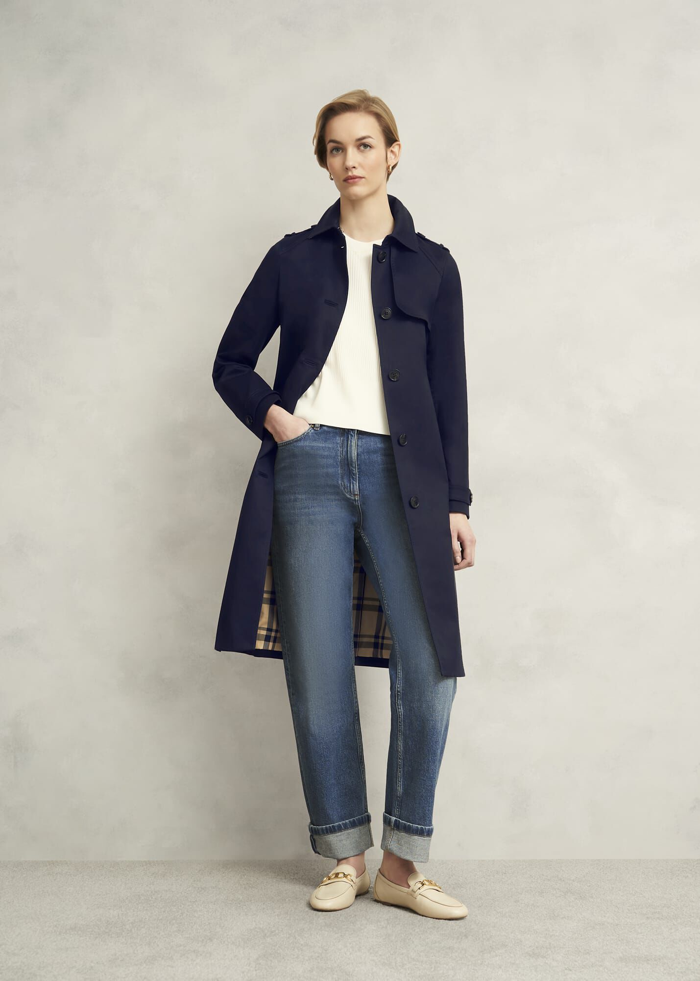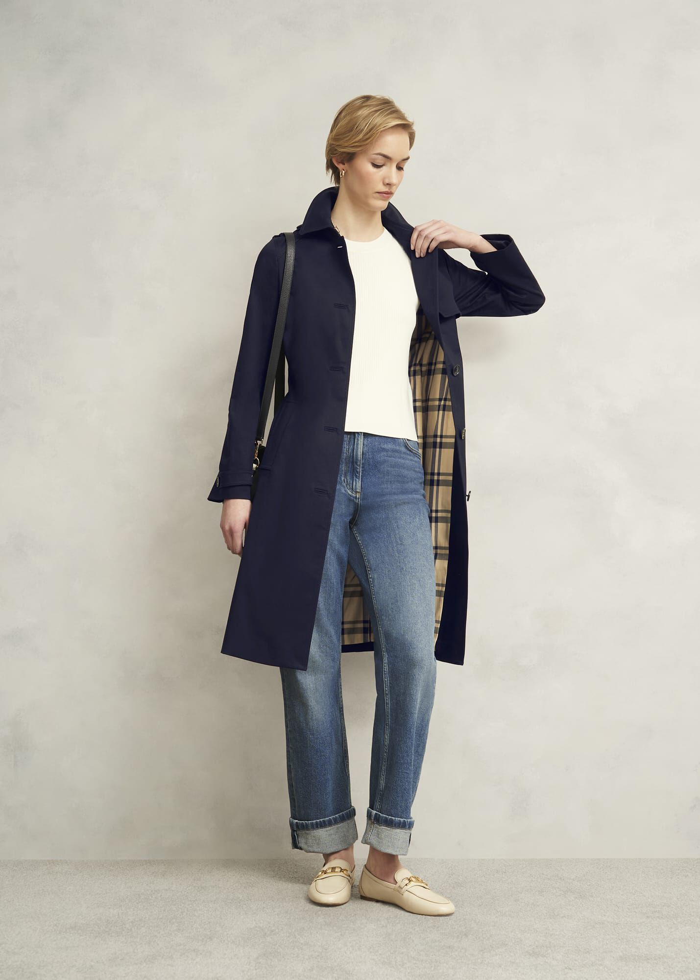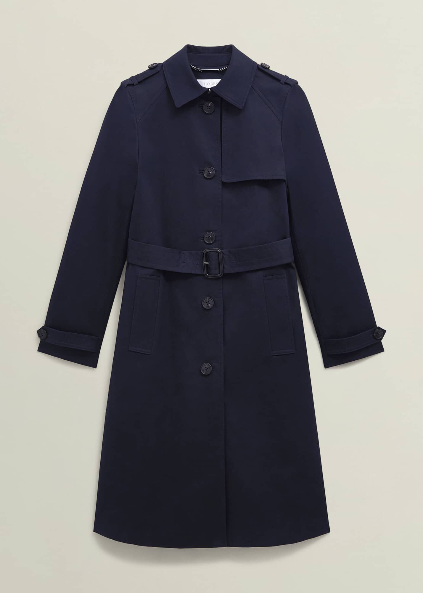 Fusing shower-resistant fabric with Hobbs’ elevated aesthetic, the Hallie trench transcends seasons with no effort required.