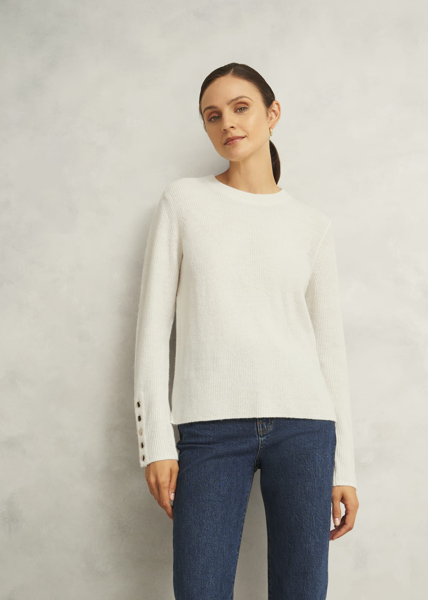Soft-touch staples. Designed with every day in mind, the Jasmina jumper lends a wear-everywhere ivory hue and relaxed fit to myriad outfits.