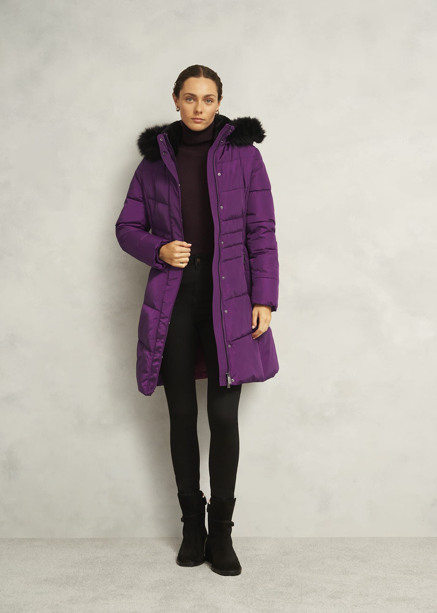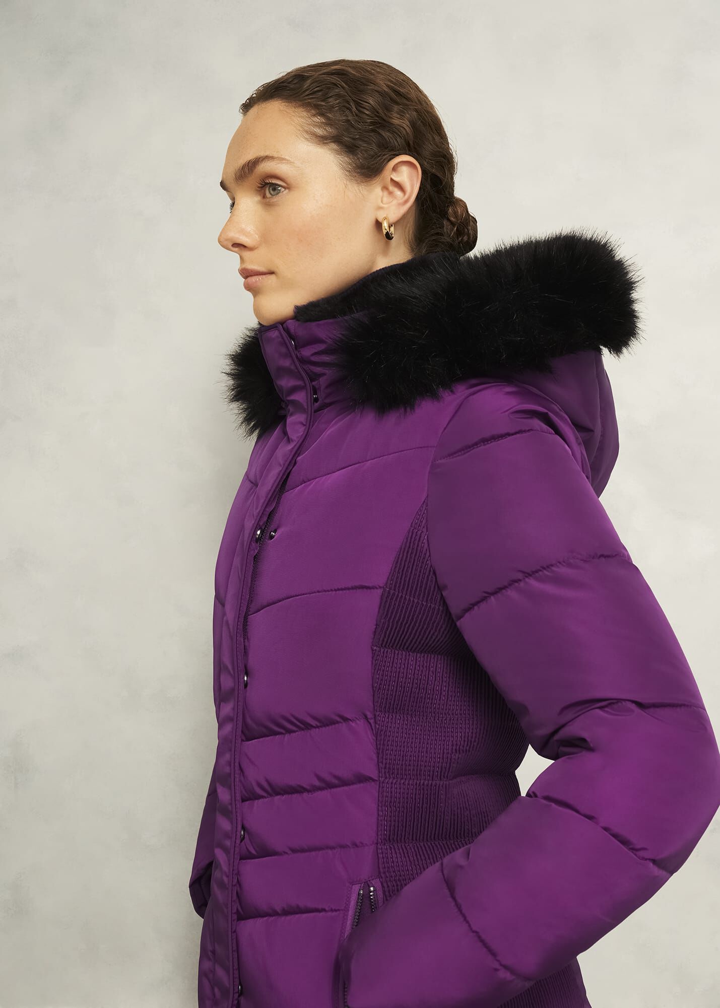 - Removable faux fur hood