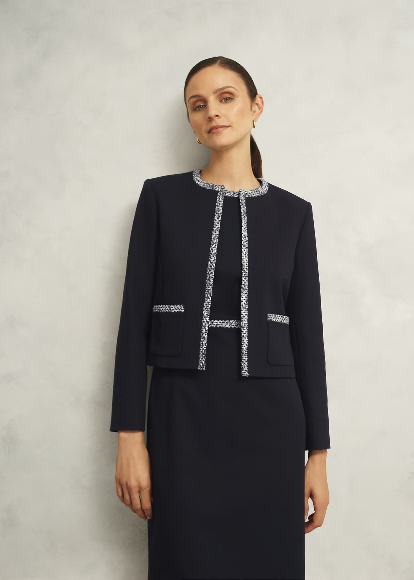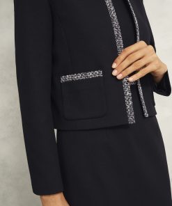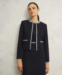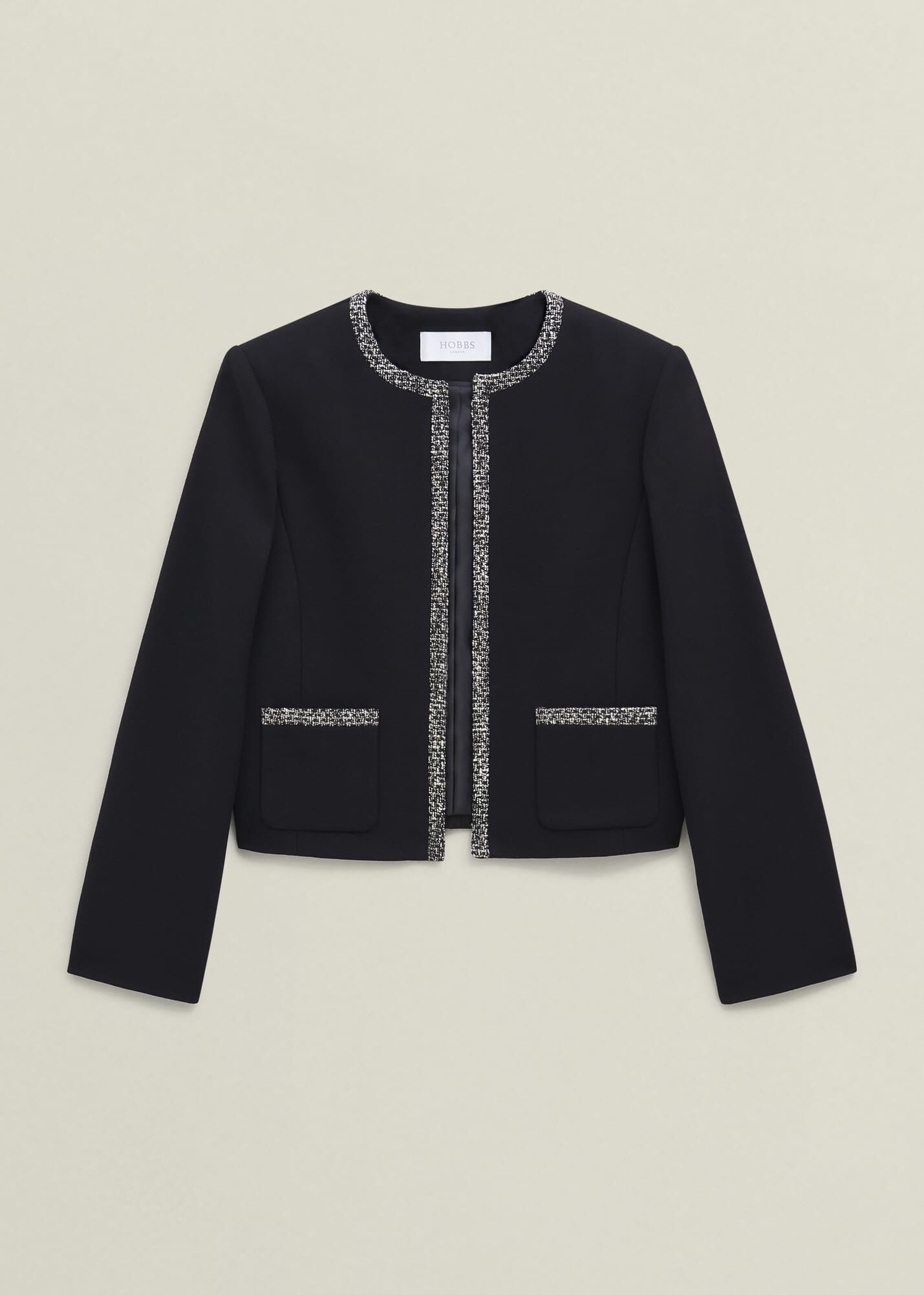 Made for your workday edit, the Joyce jacket is tailored with tweed trims for a touch of textural elevation.