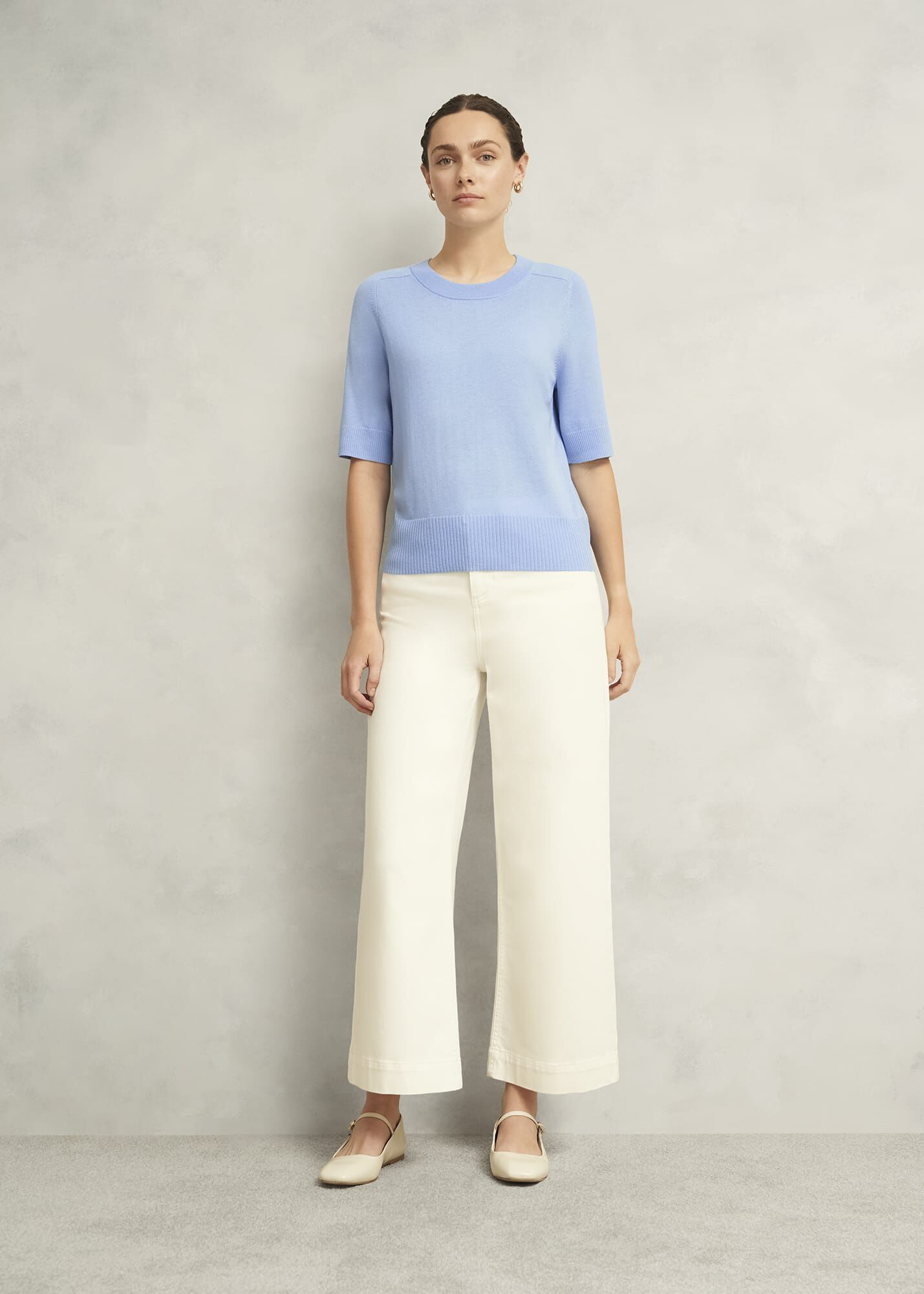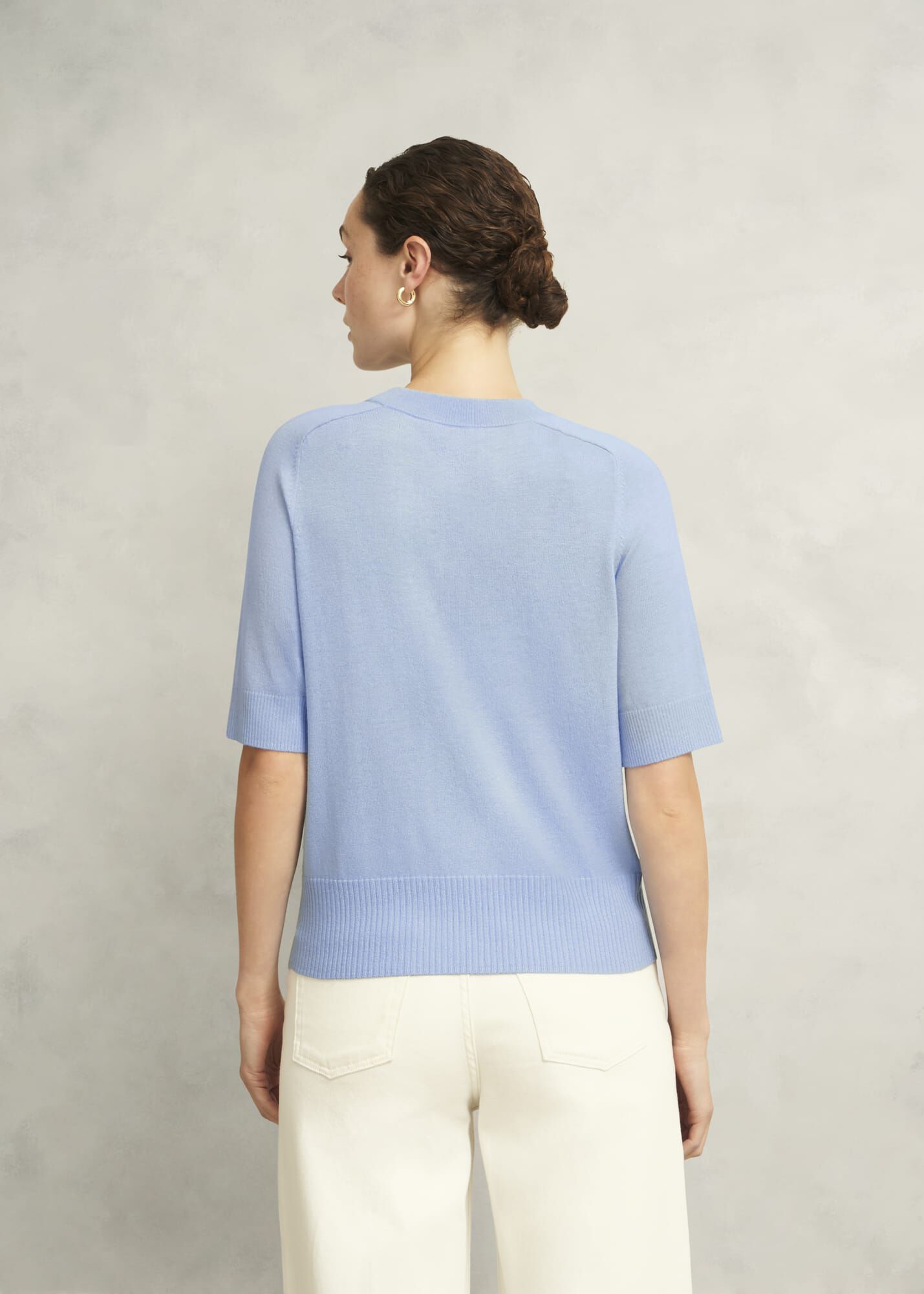 A suitable layer for every season, the knitted Leena top balances a soft wool blend with breathable short sleeves.
