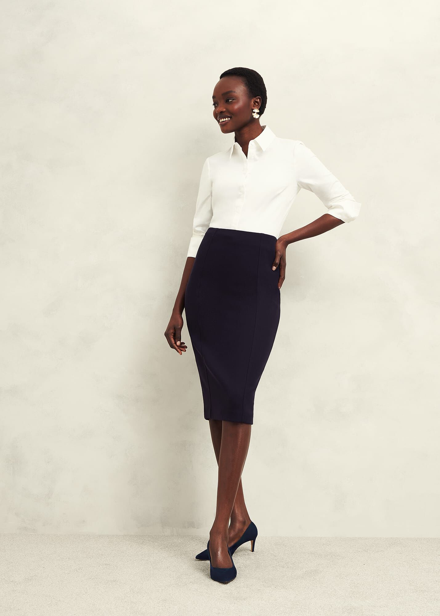 Unbeatably chic: opt for feminine and flattering tailoring in the office with the Aly skirt. Part of our newest skirt suit, embrace confidence in the timeless pencil silhouette and considered seams.