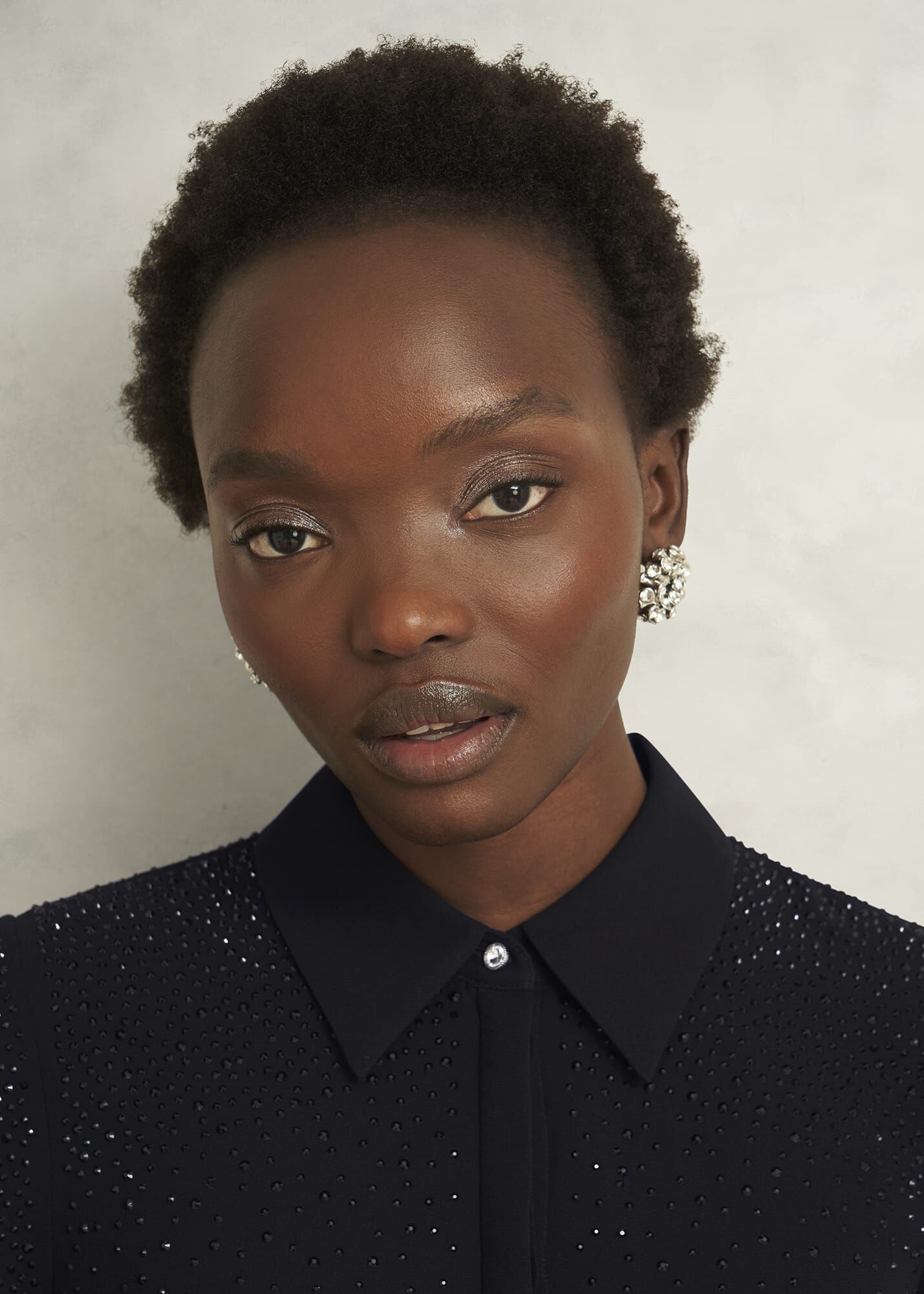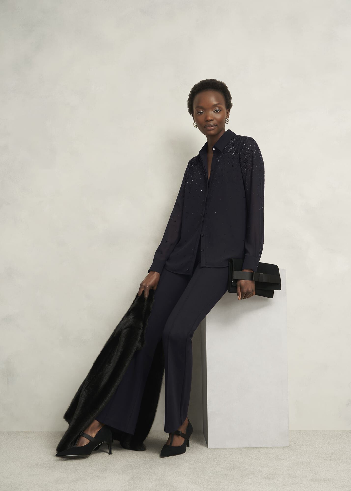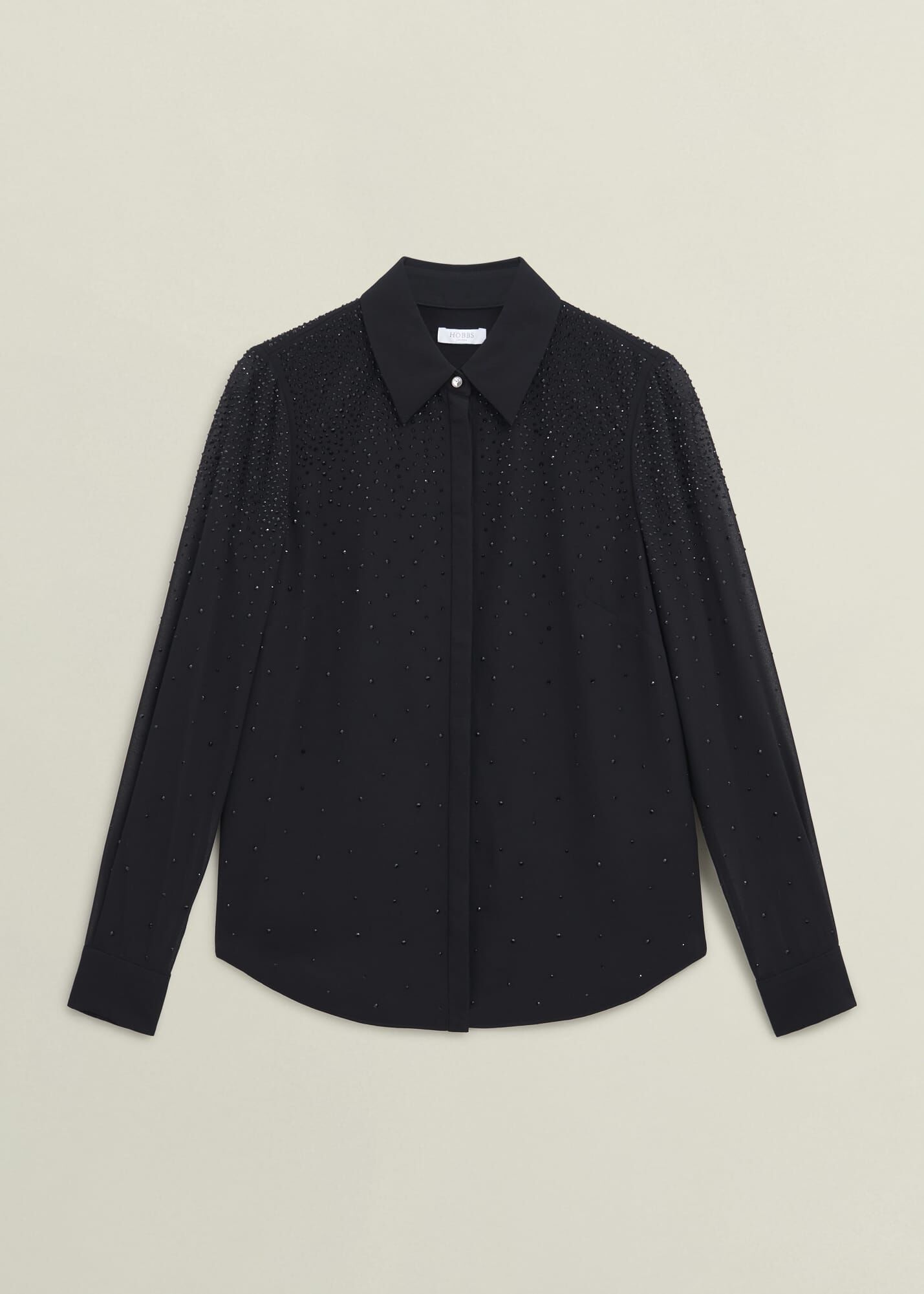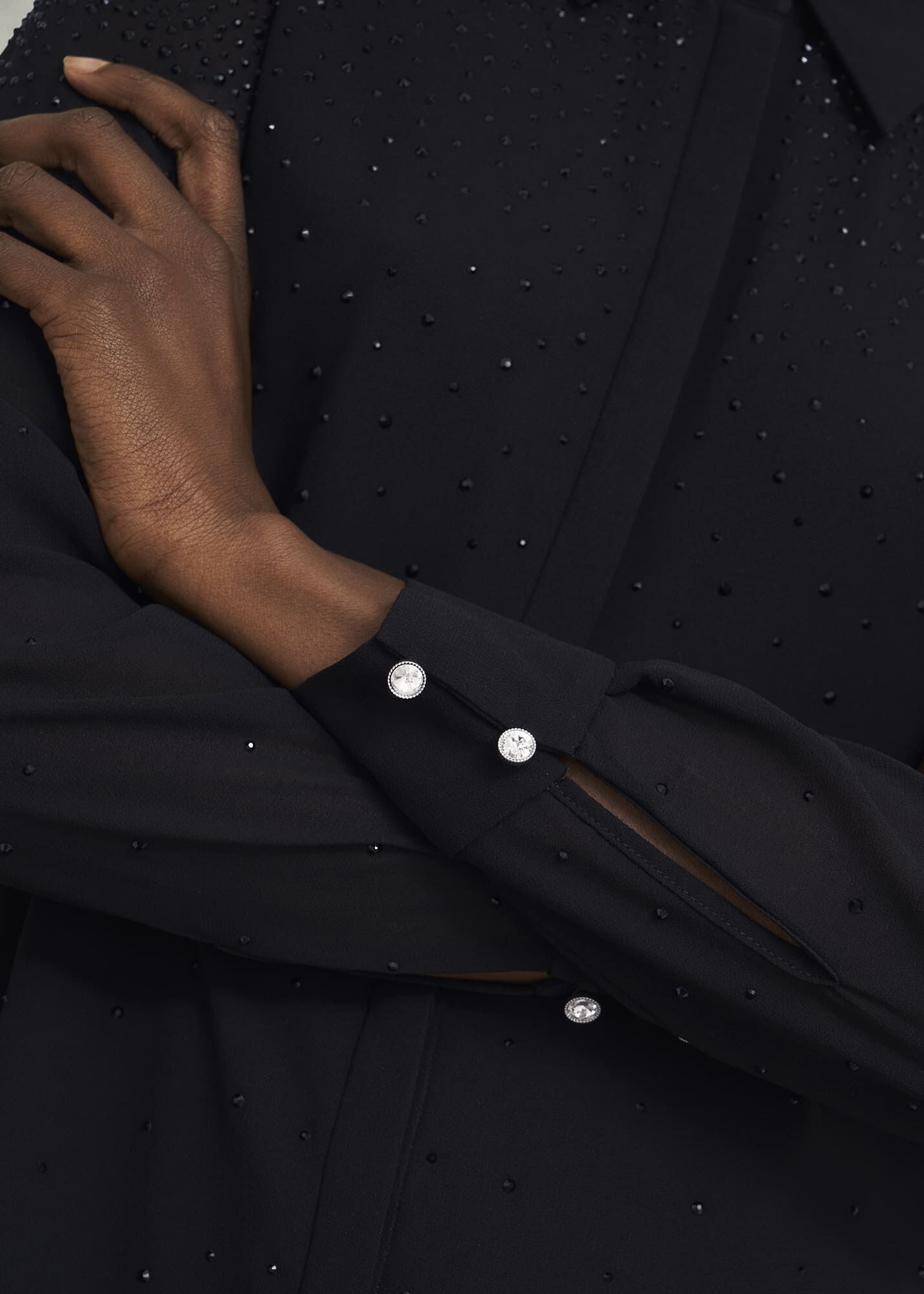 Adorned with all-over tonal diamantes, transition from work hours to after hours effortlessly in the Shona shirt.